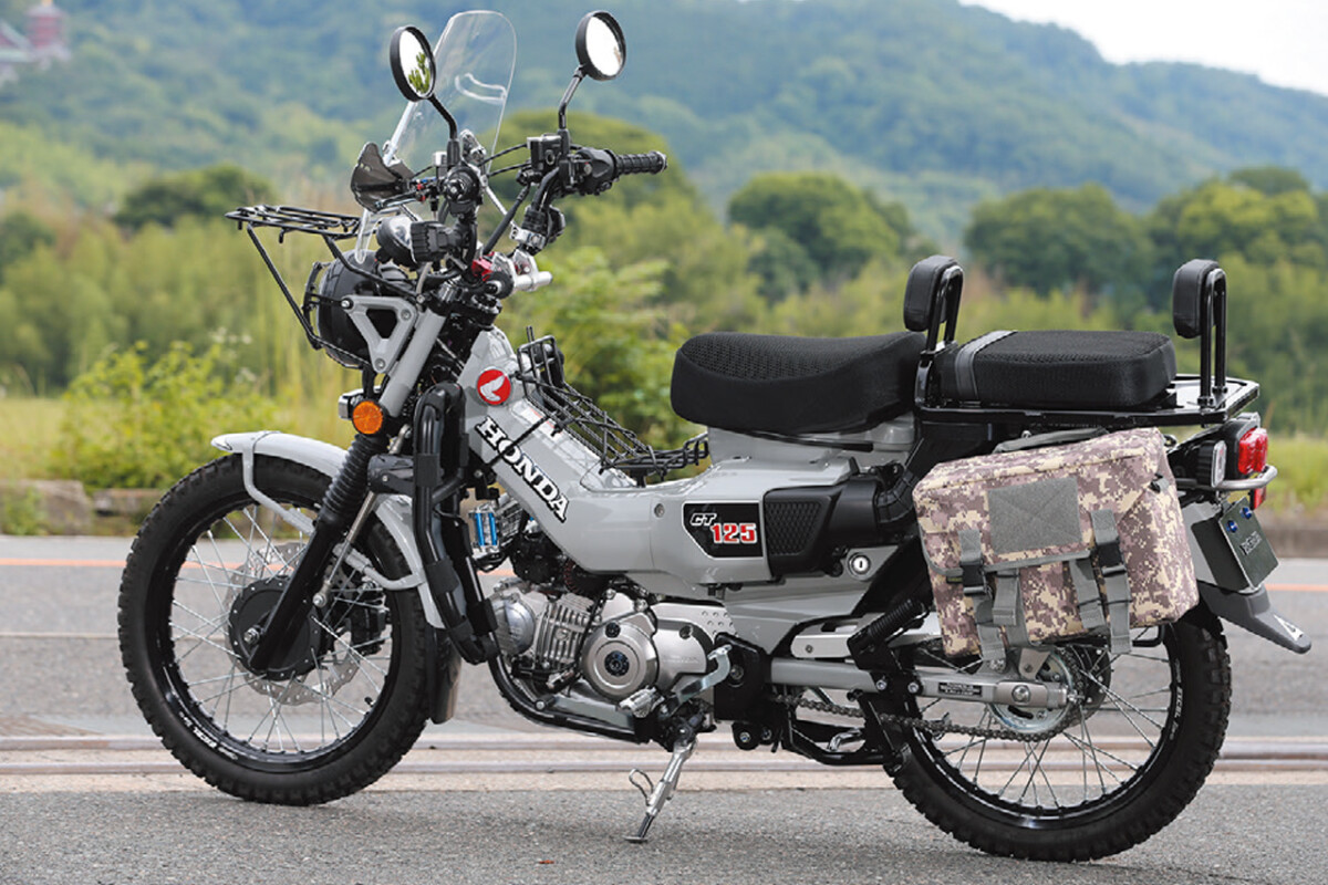 現在の原付二種の覇権マシンとして君臨しているCT125。野山にも都会にも映えるトレッキングバイクがコンセプトで、そのデザインと性能が現代のライダーのライフスタイルにピッタリとマッチしている。さらに人気を後押ししているのが、カスタムパーツの豊富さだ。