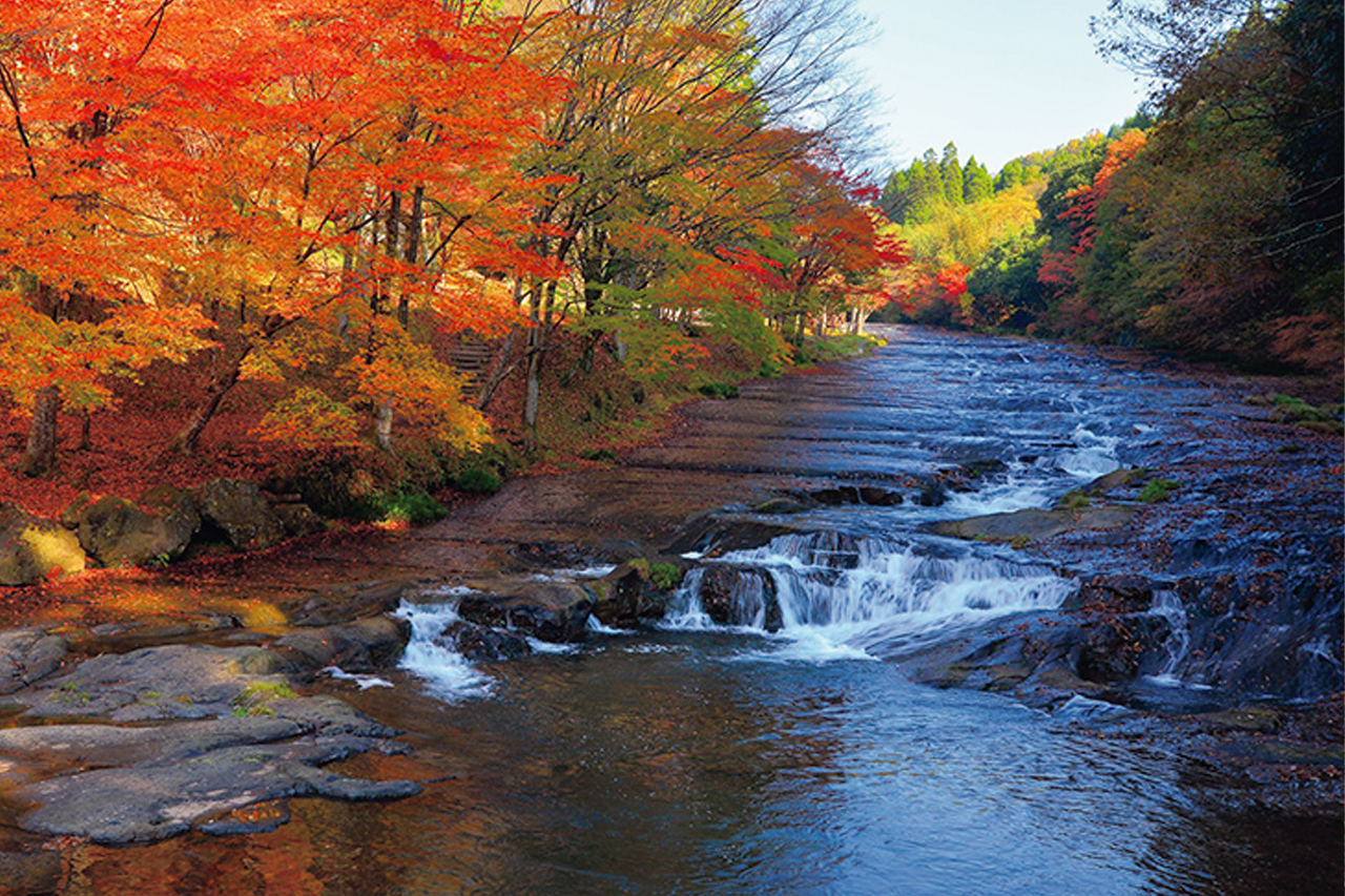 熊本・小国町にある遊水峡は、清流と大小の滝が点在する涼やかな渓谷で、10月下旬頃からは周囲の山々が紅葉に染まり始め美しい景観に。アクセスルートは九重や阿蘇を駆け抜ける絶好のワインディングで、走りと景観の両方を堪能できる。温泉地も近く、秋の阿蘇・九重ツーリングに立ち寄りたいスポットだ