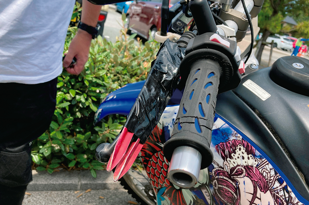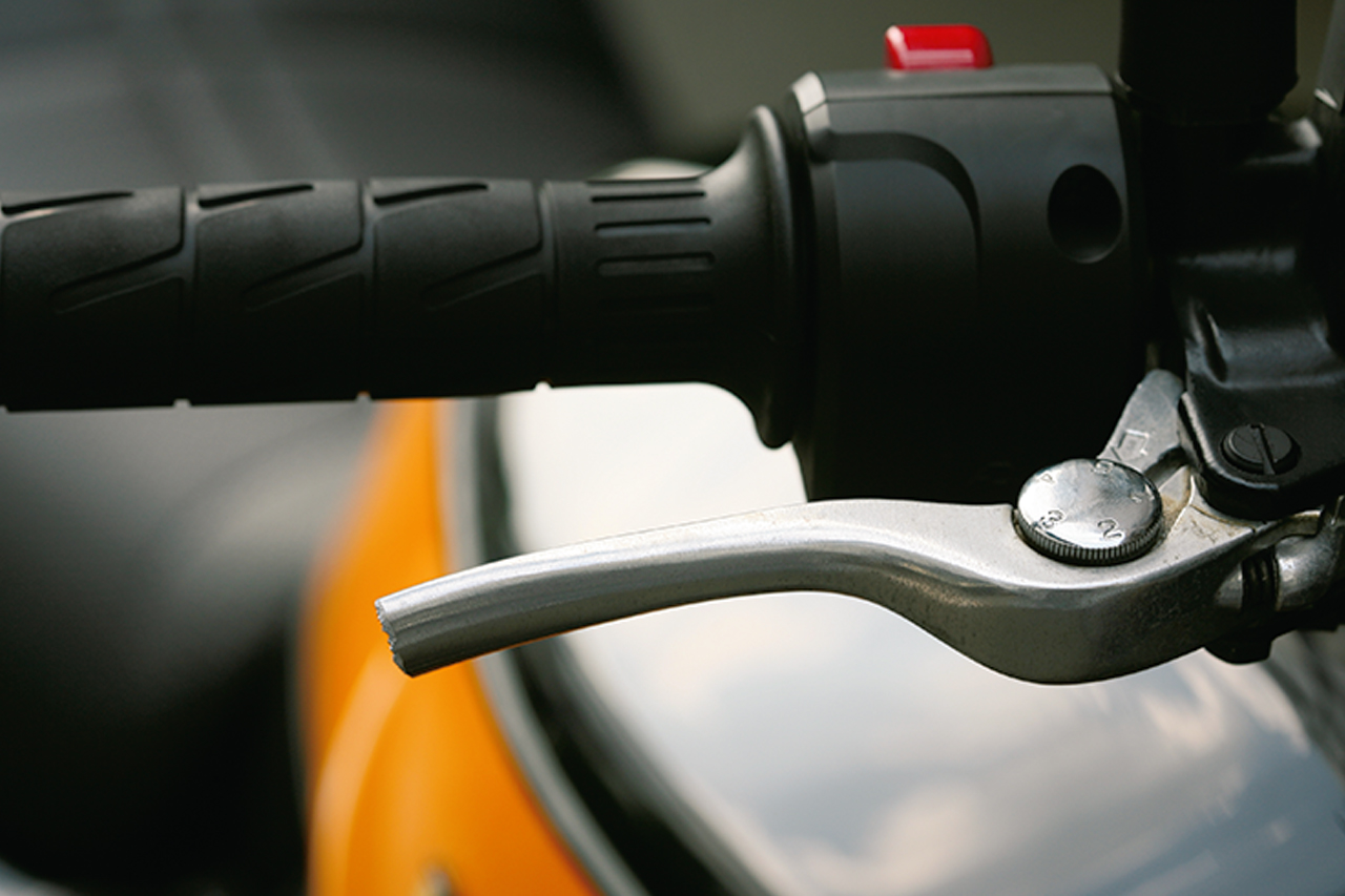 レバーが折れるのは、転倒が原因とは限らない。転倒で曲がったレバーを修復しようと、無理な力をかけ“折って”しまうことも多いのだ。なので、レバーが曲がってしまった時は、まずその状態で走行が可能かどうかをチェック。走りにくくても曲がったままでも、走行が可能であるのなら無理に曲げ直さない方がいい。優先すべきは、修理可能な場所まで自走可能な状態を維持することなのだ