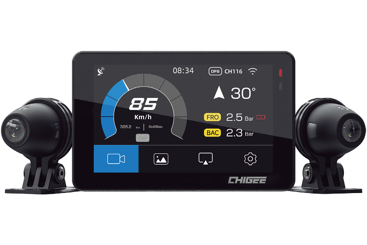 5インチモニターで視認性が高く、ドラレコ機能などタナックス製スマートライドモニターの標準モデルとなっています。モニターは1000nito高輝度IPS液晶で多角的な視認性が魅力、昼夜を問わず使用できます。ドラレコ機能を省略し、USB給電が可能となった「AIO-5 Play」(¥55,000税込)も発売中