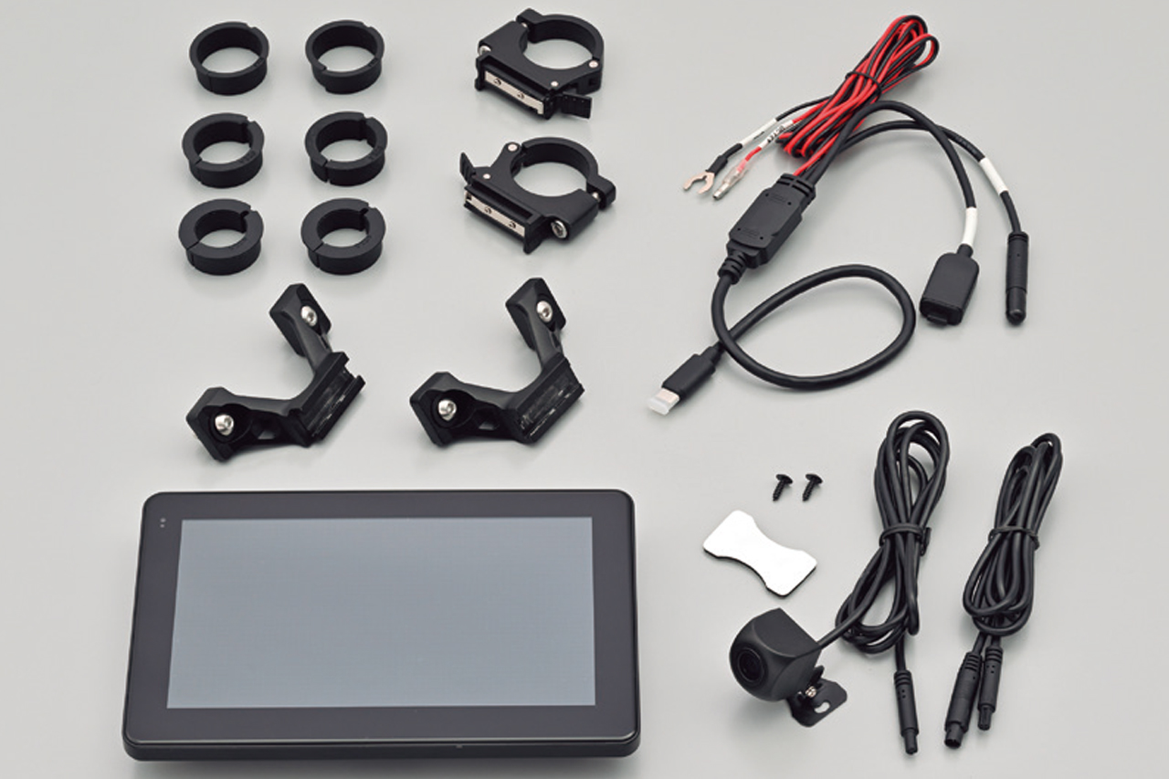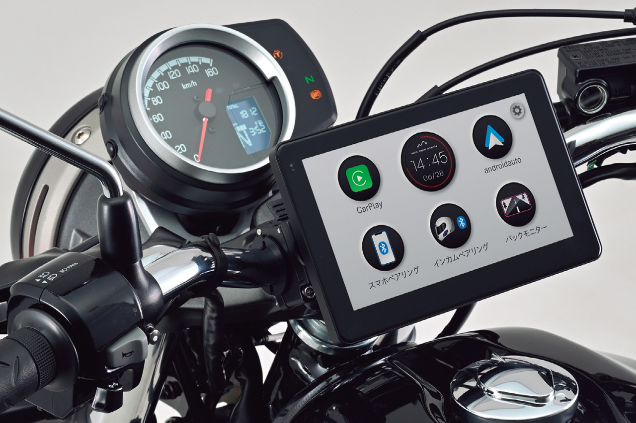 ナビシステム、音楽再生やメッセージの送信など基本性能はもちろん、バックカメラの表示(録画機能はありません)も可能で、走行中のライダーへのサポート性能も充実しています。7インチの大きめモニターで視認性と操作性も両立しています。