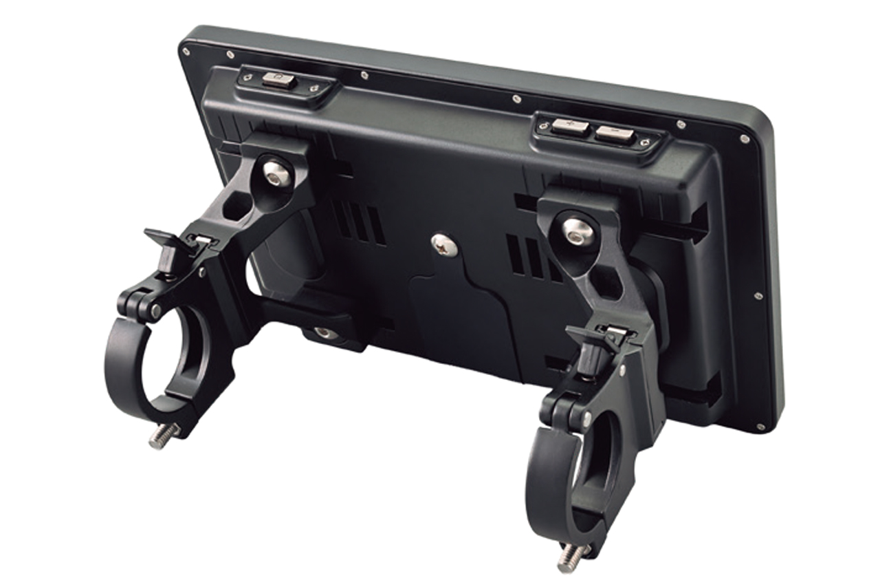 好評発売中の「モトスマートモニター」は、振動、衝撃、熱、水、ホコリなどに対する規格外の強靭性が特徴。フルアルミ筐体で防水防塵性能IP66相当、70℃の耐熱テスト・-20℃の寒冷テスト・7Gの振動テストをクリアした最強仕様となっています。落下防止を防ぐためハンドルバーにしっかりクランプできる仕様となっており、バイクから離れるときは簡単に外して持ち運ぶことも可能。