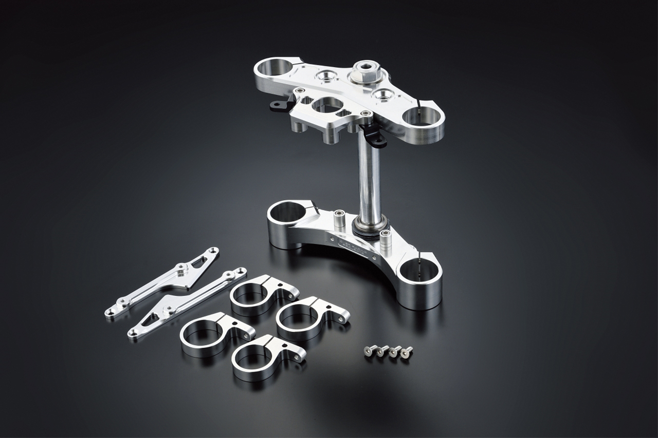 製作進行したOVERのスマイリー田中さんが実際に各地カブミーティングにこれで現れているので、既に実際に見て触っている人も多いだろう。ブラックアルマイト仕上げは¥104,500。キットの価格を抑えるためにフォーク本体やキャリパーサポート、フェンダー周りは別売設定です