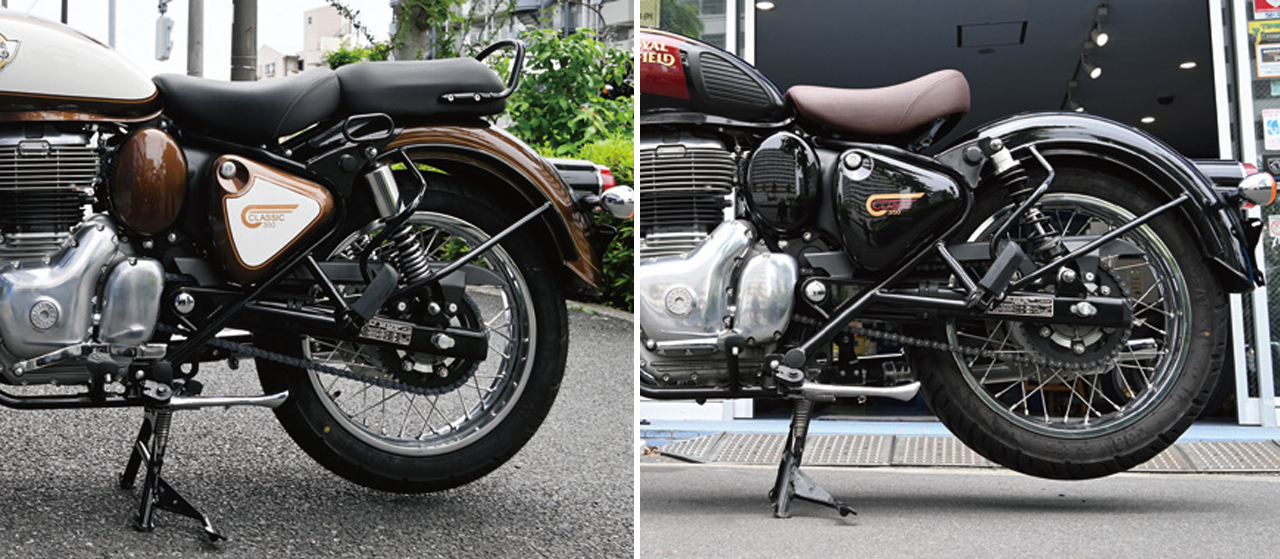 センタースタンドを立ててみると、ローダウンの差がわかりやすい!