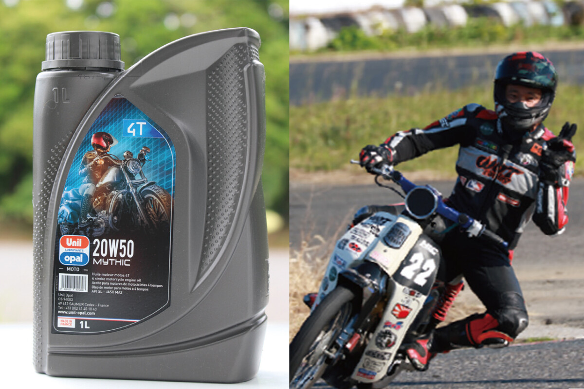 カブレース界を上位常連の『まえ坊』さんも去年のモンCub 耐からユニルオパールの 5W-50 RACEMB をレース用カブに入れて走っていて、「4 時間耐久レースでも熱ダレ症状なく安定して走れました! コスパも良いしオススメのオイルです」と大満足。レースでも街乗りでも快適に走り続けたいなら高品質なユニルオパールオイルでキ・マ・リ!