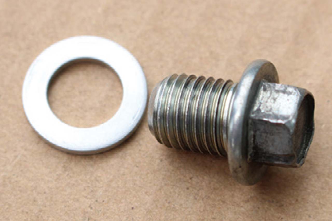 ドレンボルトとセットで使うのがドレンワッシャー。材質はアルミなので、ドレンワッシャーが潰れることで密閉するのです