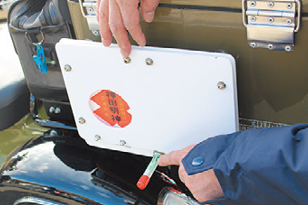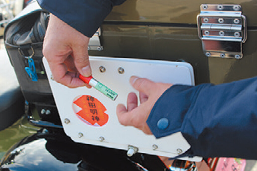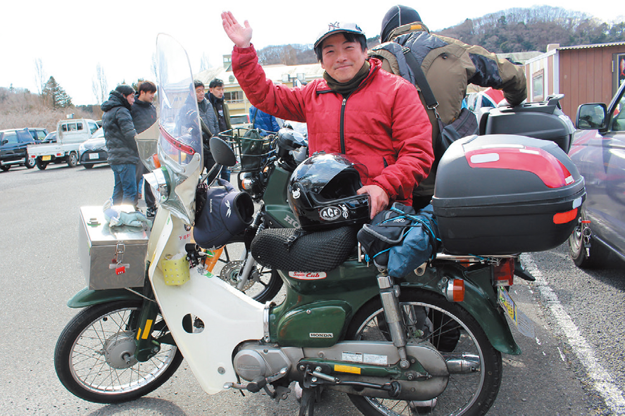 出前の途中に抜け出してきた……のではなく、普通に参加者さん。カブに付けているマルシンの岡持ちも仕事で使っているものではなく、あくまで装飾としての装備。大人の遊びだ