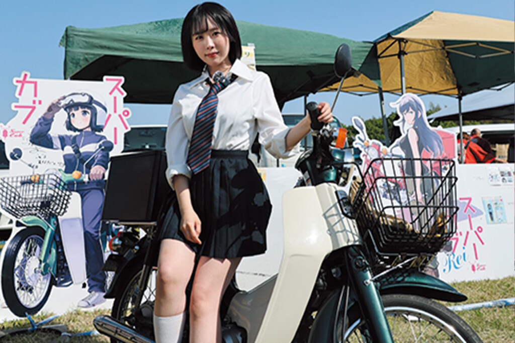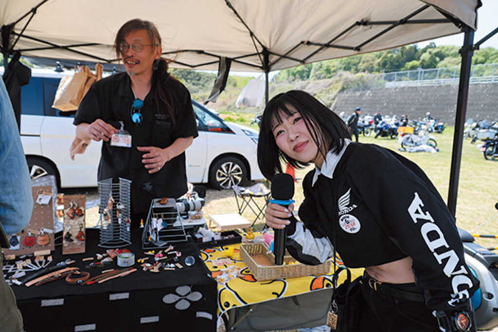 カブに馴染みの深い数々の業者さまがブースを展開!なんと、アニメスーパーカブの担任教師を演じた声優の原えりこさんもご来場してくれていました!