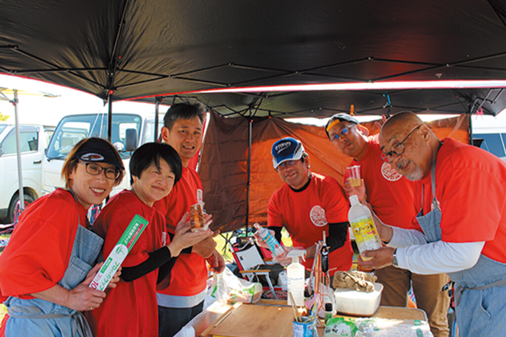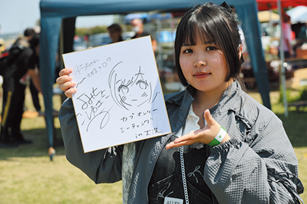 飲食ブースで牛串食べていたり。ジャンケン大会ではサイン色紙が当選したラッキーな人も!