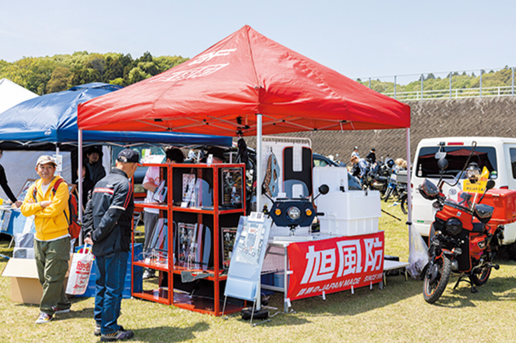 会場内にカブを置けたのでそのまま話しをしたり買い物したり……、来場した人が自由に過ごせるようになっていたと思います。『カブonlyミーティング』は参加者はもちろん、当日巻き込まれるスタッフも皆が一緒になって楽しんで作り上げて行きたいのです