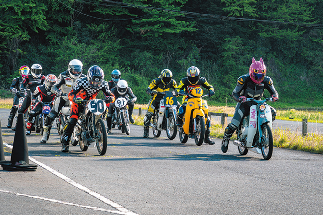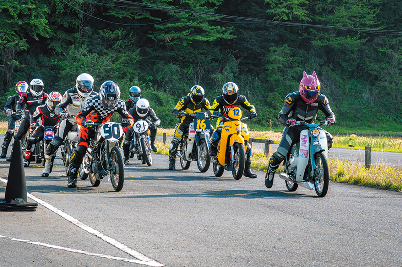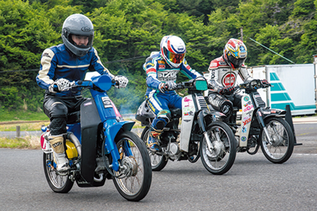 市販時に2本サスで発売された124ccまでのバイクなら何でもアリのレース。C100もC200もPW50もモンキー125もゴチャマンで走りました。こちらも改造無制限で、排気量124cc以内ならOK