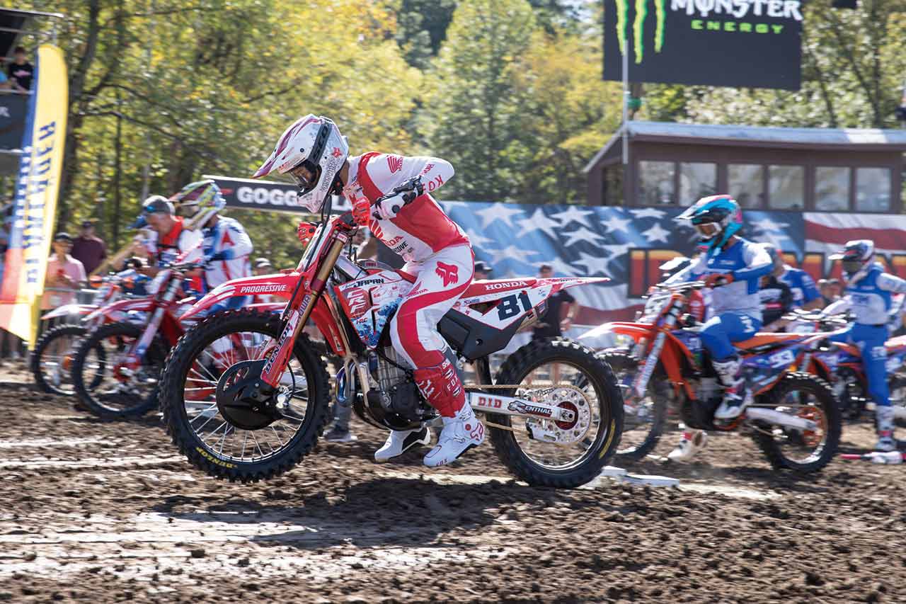 250ccからの乗り換えについてどう思っているのか。レース後に話を聞くと、「450ccマシンに乗り換えるのは、HRCの最高峰のスタッフがマシンをセッティングしてくれたおかげで難しさはそこまで感じなかったです。ただ、450ccに乗る上で気をつけていたことがあって。特にレース後半、疲れてきた時に250ccのライディングの癖が出ないように気をつけました。250ccに乗る場合ジャンプの着地でアクセルを全開にしたりするのですが、450ccだとパワーが違うので転倒につながってしまいかねない。実際、4年前に名阪スポーツランドで開催されたD.I.D全日本モトクロス選手権に450ccで出場した時に、その癖が出て転倒してしまいました。今回はかなり調子良く乗れていたので、そこだけは注意して走っていました」とのこと。
