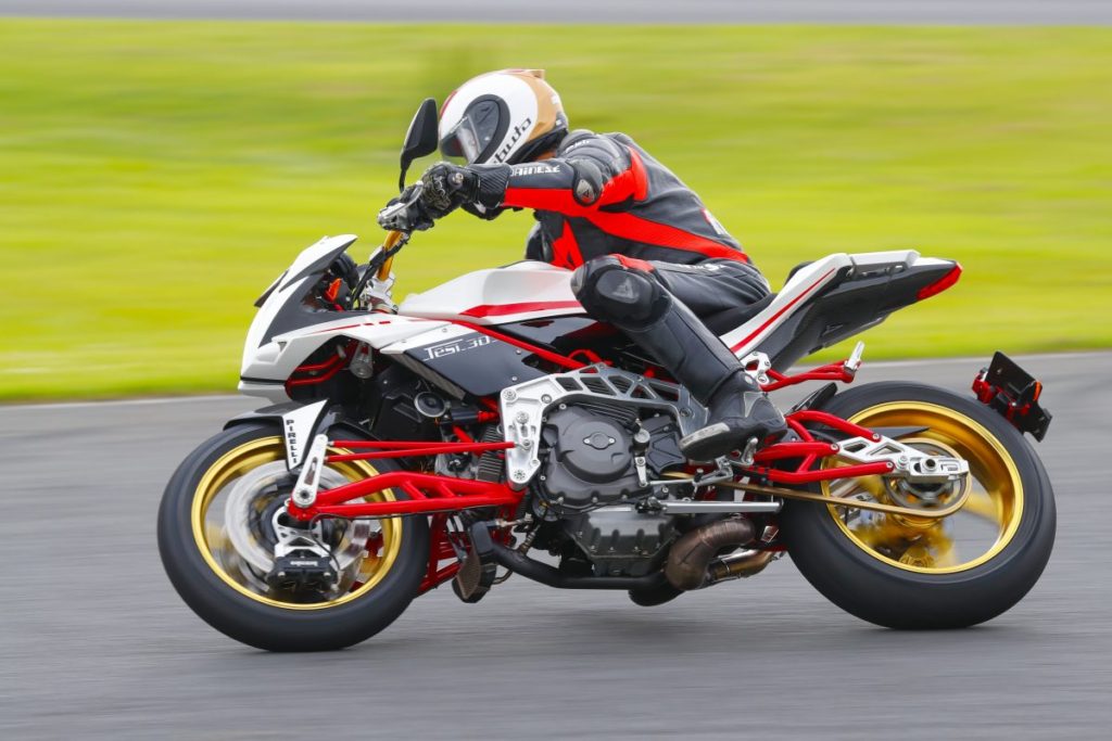 ――ビモータは昨年、カワサキの資本によって復活した。そのため、ドゥカティのエンジンを搭載するこのTESI‐3D NAKEDもファイナルモデル(国内には10台ほど入荷予定。前後サスにオーリンズ製TTXショック、フロントブレーキにブレンボ製Stylemaを装備)をもって終了するので、興味のある方は今が最後のチャンスだ。