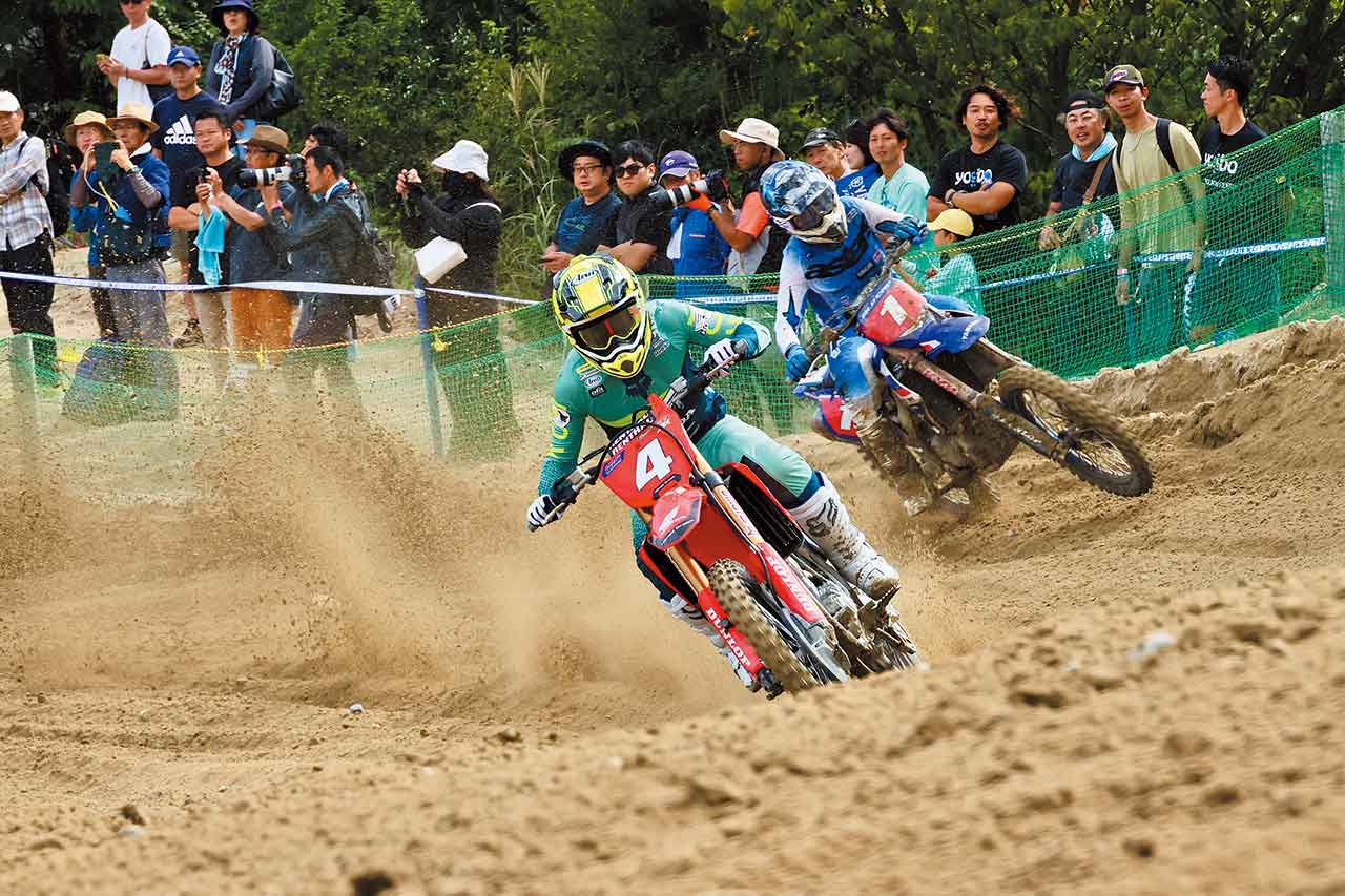 3ヶ月に渡る長いインターバルを経て再開された第5戦近畿大会。ランキングトップのジェイ・ウィルソン(YAMAHA FACTORY RACING TEAM)は、前戦中国大会では負傷の影響もあり勝利を逃したが、ベルギーを拠点としてMXGPライダー達とトレーニングに励み、自信を得て臨んだ。一方大城魁之輔(YAMAHA BLU CRU RACING TEAM YSP浜松)も好調なところを見せて、予選ではウィルソンを視界に捉えたまま2番手通過してみせた。
