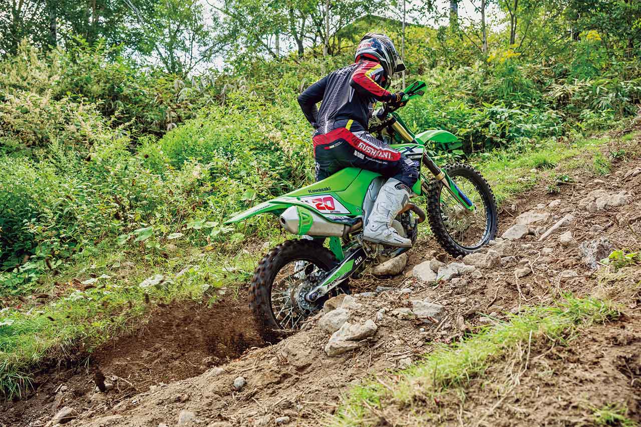 クロスカントリーやエンデューロでは避けては通れないのがガレ場。速度域が遅く、前輪と後輪の軌跡を考えなくてはいけないガレ場は、IAワタライがモトクロス現役時代には意識していなかったテクニックだったが、ベテランエンデューロライダーとなった今は初心者~中級者へ教えるノウハウが蓄積している。後編はガレ場スタックからの脱出テクニックを解説してもらおう!