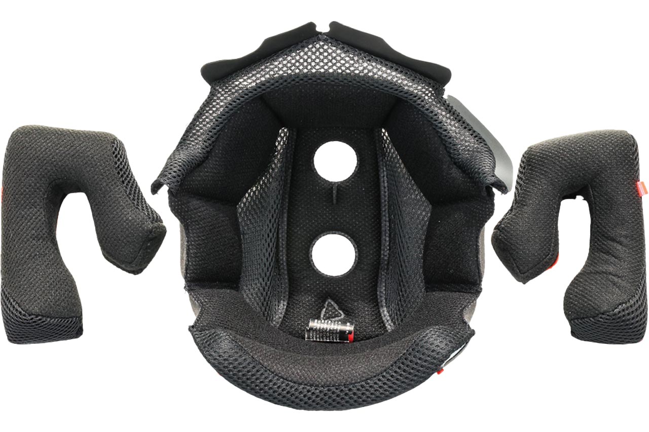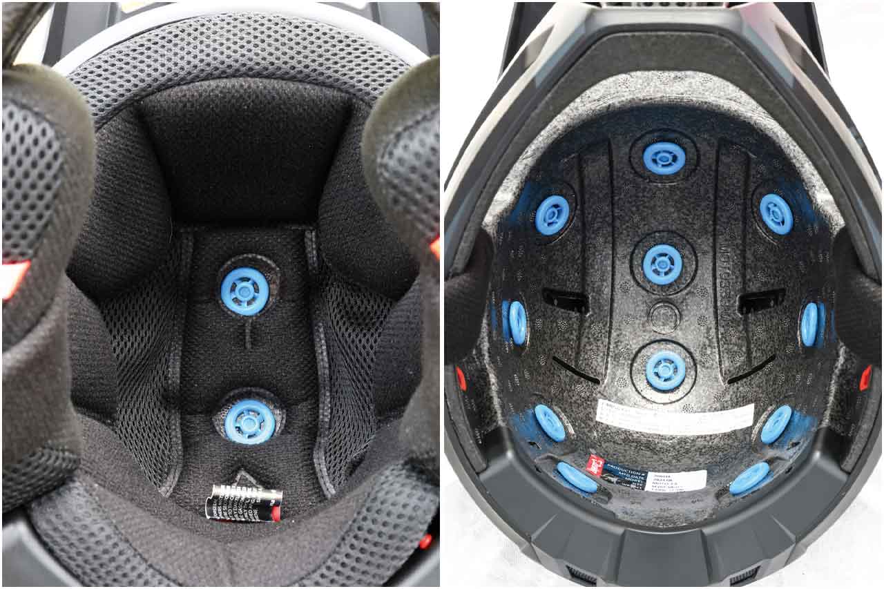 インナー&ライナーパッドは吸湿発散性、通気性、防臭性に優れ、チークパッドは転倒時の緊急性に備え、脱着が容易な造りとなっている