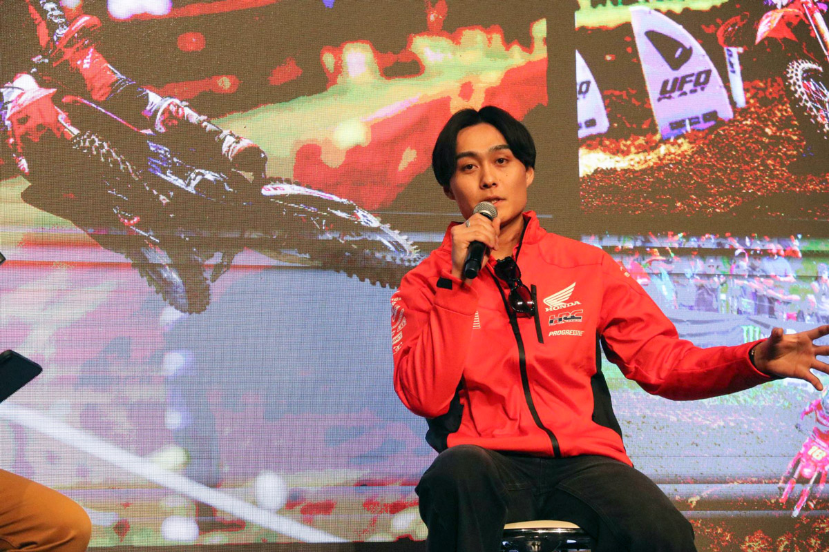 その翌日となる12月18日、ベルサール秋葉原では「日本人初のSMXワールドチャンピオン 下田 丈 凱旋トークショー」が開催され、ホンダHRCプログレッシブ所属の下田と、チーム監督ランド・リンドストロームがメディアの前に登場。歴史的快挙を成し遂げた直後の“生の声”が語られた。