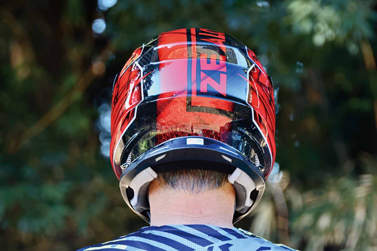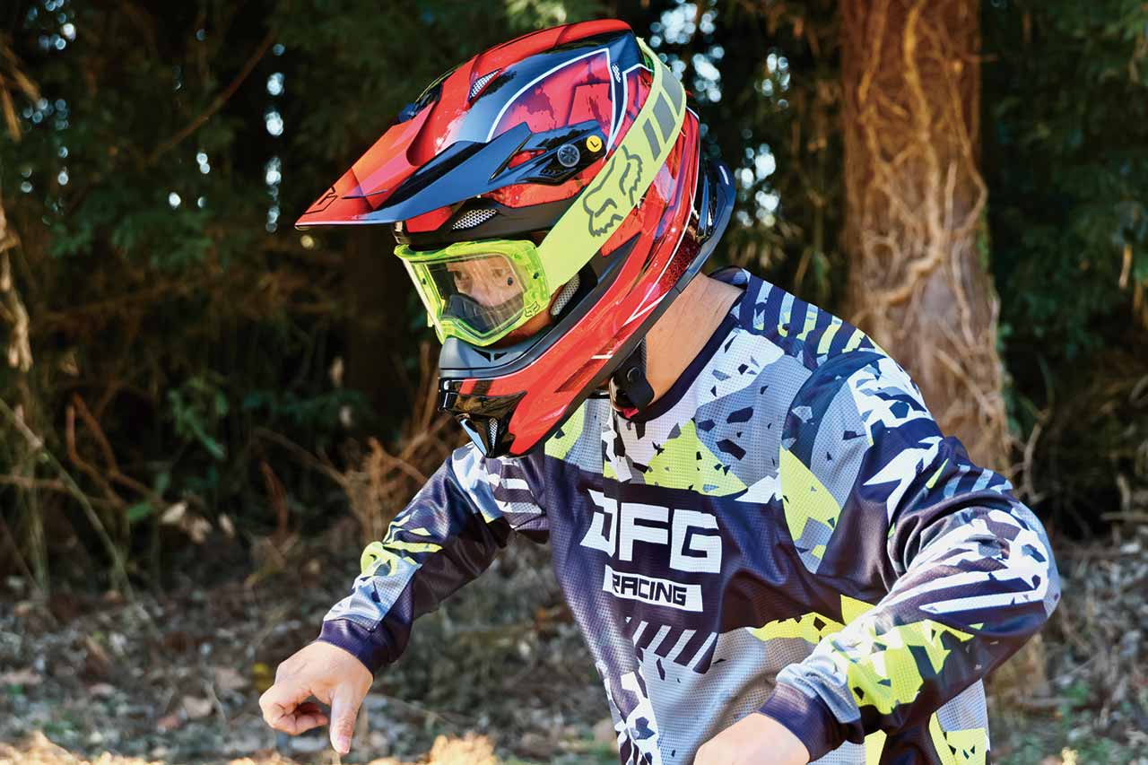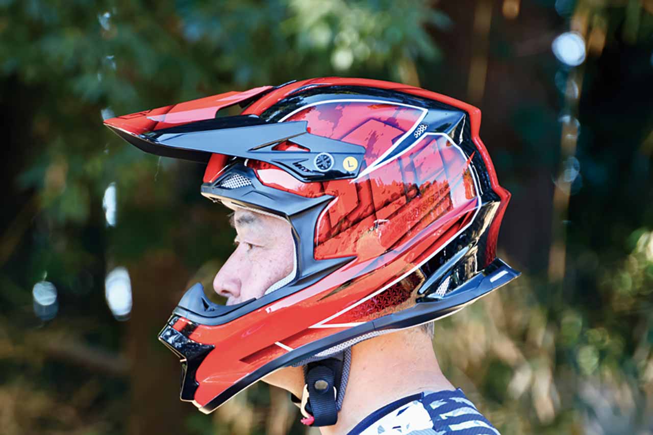 首の負担を軽減する軽量性、しっかりとフィットし、頭を保護してくれるオフロードヘルメット「ZEALOT MudJumper 2」を紹介しよう。今回本誌宮崎が入手したのは、重量わずか1100g前後という驚くべき軽さを誇る「CARBON HYBRIDモデル」。ちなみに廉価版のFRPモデルも、1200g前後という驚異的な軽量性を持っているのだ。首周りの負担を軽減するこのヘルメットは、G-NETでチャンピオンに輝いたこともあるあやと選手など、トップライダーからの評価も高い。