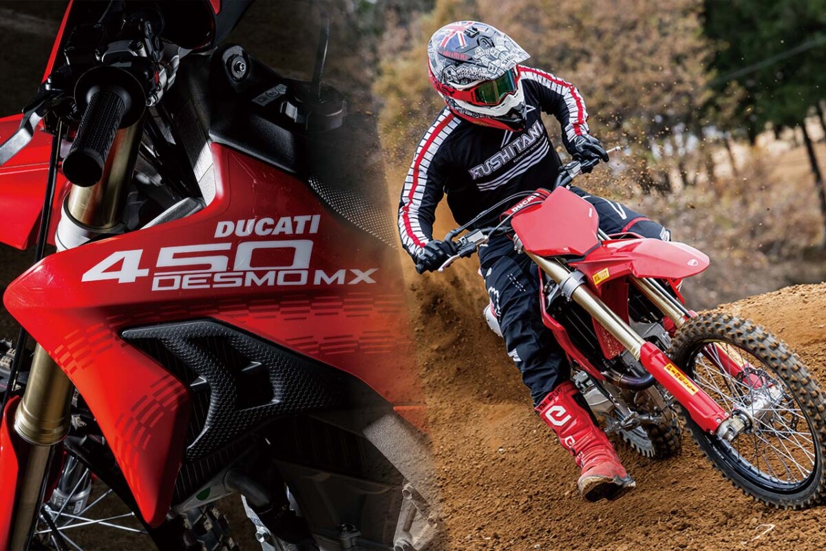MotoGPを席巻するドゥカティが送り出してきたDesmo450MXに、本誌インプレッションライダー熱田孝高が試乗。デスモドロミックDOHCエンジン、オリジナルフレーム、最新鋭の電子制御は、ドゥカティのレーシングDNAから生まれたものだ。果たしてその実力は!?