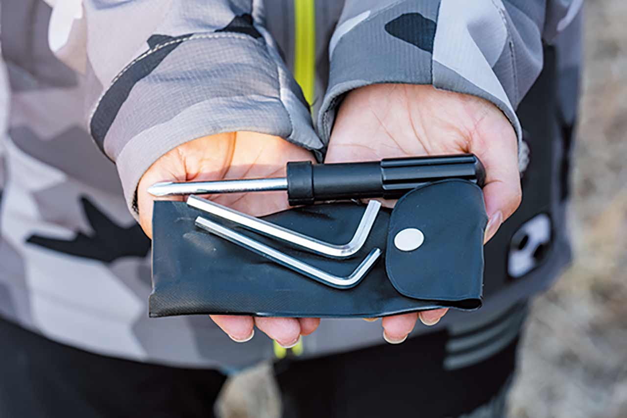 燃料タンクも高さを抑え、フラットで自由度の高いポジションを実現。外装デザインは街乗りにも違和感のないスタイリッシュさを持たせつつ、オフロードでの動きやすさを優先。足の引っ掛かりや体の移動を妨げない形状としている。