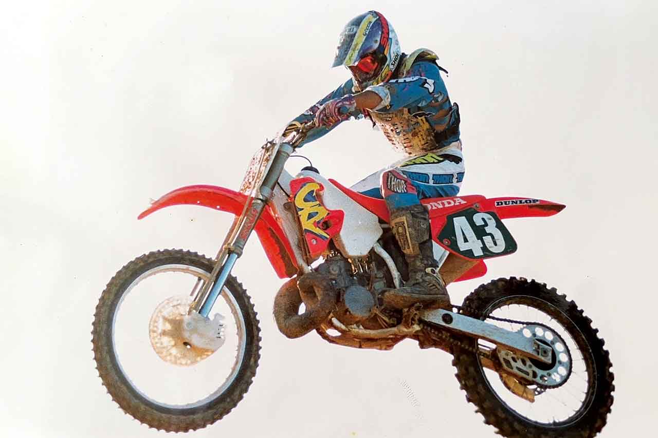 あの頃一番上のクラスだった250クラスに出ていました。予備予選は落ちたことがなかったけれど、メインレースまで残れたのは1回だけ、サンノゼの大会で、初めて涙が出ましたね。ジェフ・スタントンが祝福に来てくれたんです。あれは嬉しかった。スタントンとは、アメホン(アメリカン・ホンダモーター社)主催のスクールに僕が生徒で参加した時に交流ができて、彼からトレーニングや食事についても教わったんですが、アドバイスの内容があまりにもレベルが違って凄すぎて、僕にはどうしようもないくらい。そのスタントンが、僕のメインレース進出を知って声をかけに来てくれた。僕のゴーグルの中は、涙でビショビショでした。」