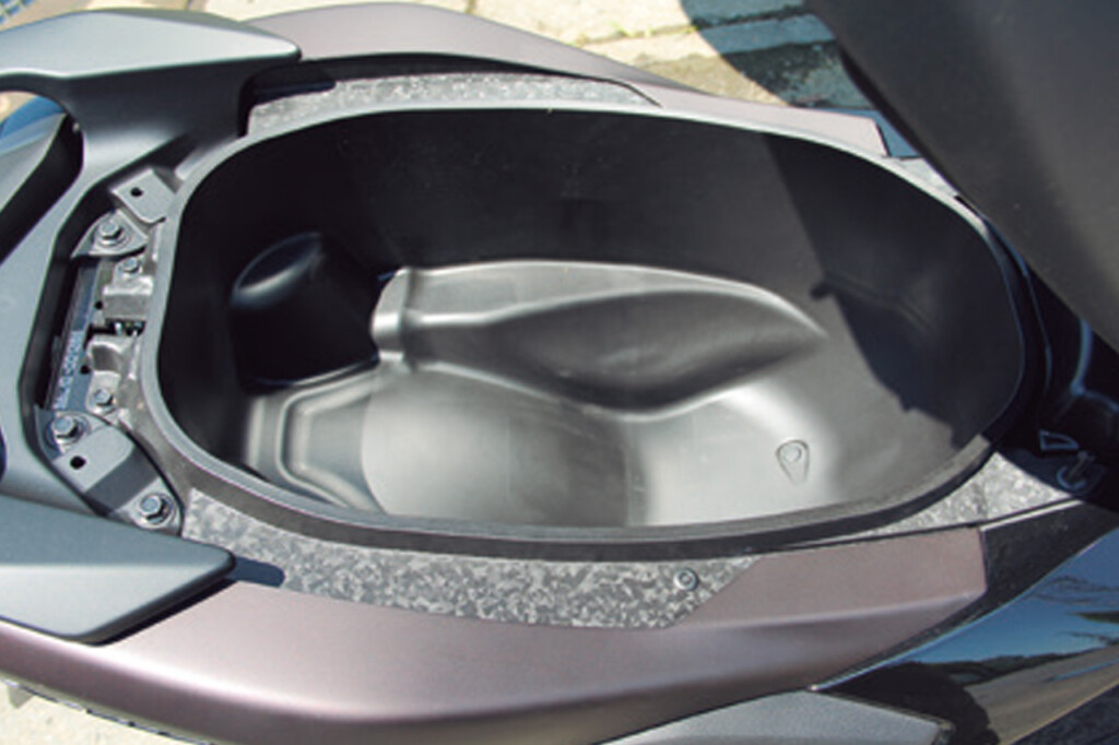 シート下トランクは約23Lの容量を確保、オープン状態をキープできるストッパーも装備するなど使い勝手が高くなっている。タンデム時に便利なヘルメットハンガーも2箇所設置