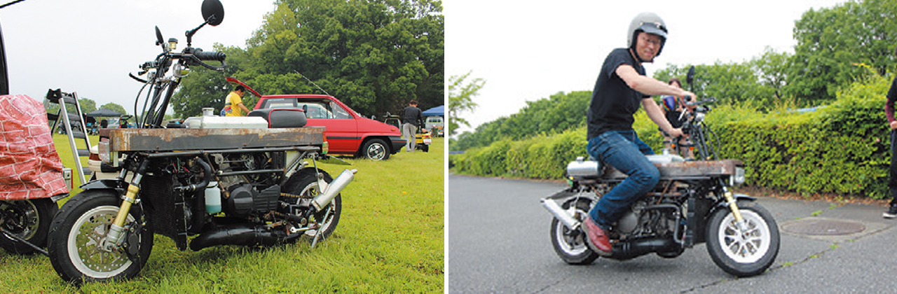 仔猿ベースでモトコンポ外装を刻んでミニマムにしたのはモトコンポ道家元『SUBARM』。そういえば今回はエンジンやフレームを見せたいために、外装を外して展示している車両が多かった印象デス