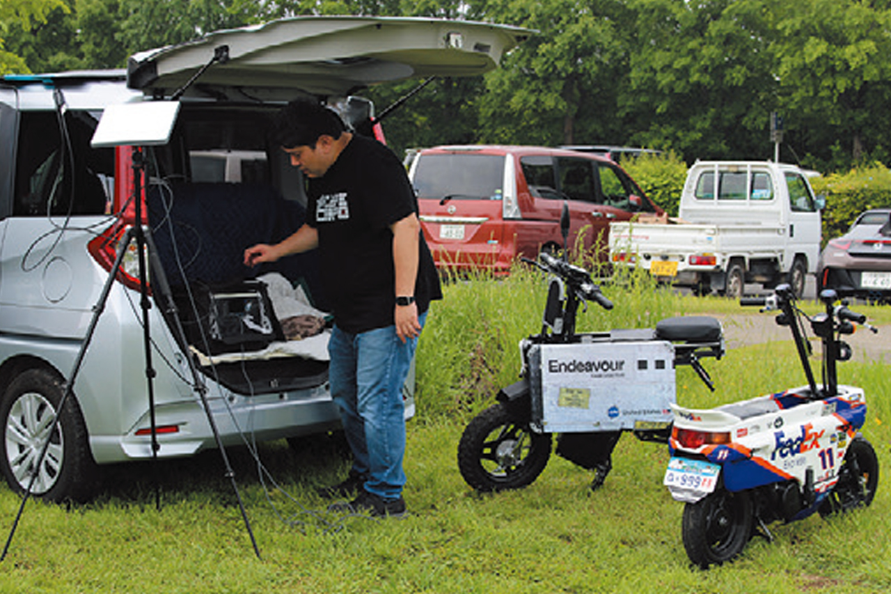 長坂フリーWi-Fiは超バリバリ最強No.1で現場からのポストもリプライも捗り、動画だって楽々アップロード可能。おっと、側にはICOMA Inc. タタメルバイク(¥498,000/税込/送料別途)も!