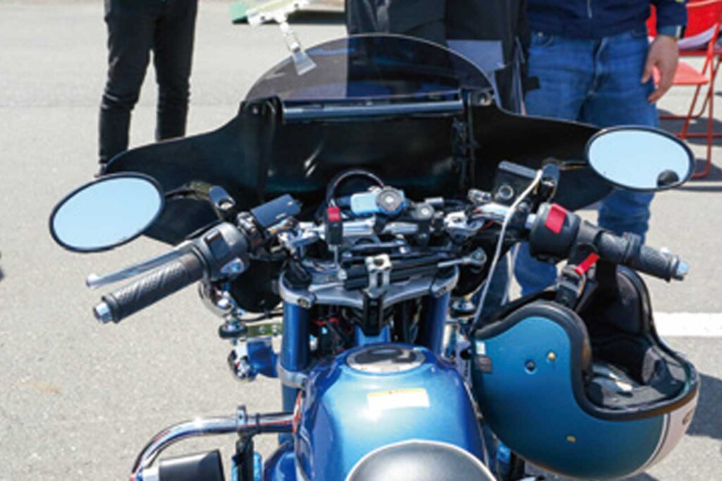 一見すると大きくカスタムしている感じではないが、細かい部分にこだわりを持ってカスタムしていることがわかる。外装ではGクラフトのシートに換装したほかハンドルも変更。利便性を高めるためタンクバッグが装着されている。エンジン周りではマフラーをヨシムラのダウンタイプに変更。リアサスにはオーリンズの2本ショックを装備。ステップ周り、サイドスタンドも変更している