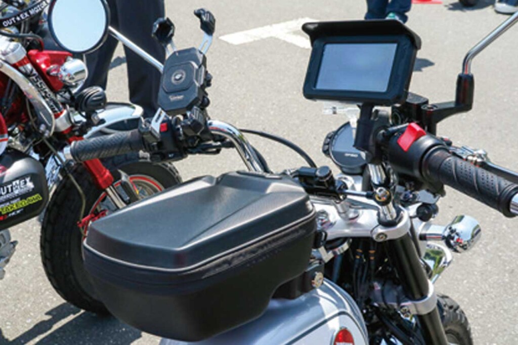 フロントカウルにアンダーカウル、それにモリワキのダウンマフラーを装備したモンキー125。リアボックスも装備しているので、おそらく実際に移動の足やツーリングの相棒として乗っているモデルだろう。そのためカスタムは最小限にとどめている