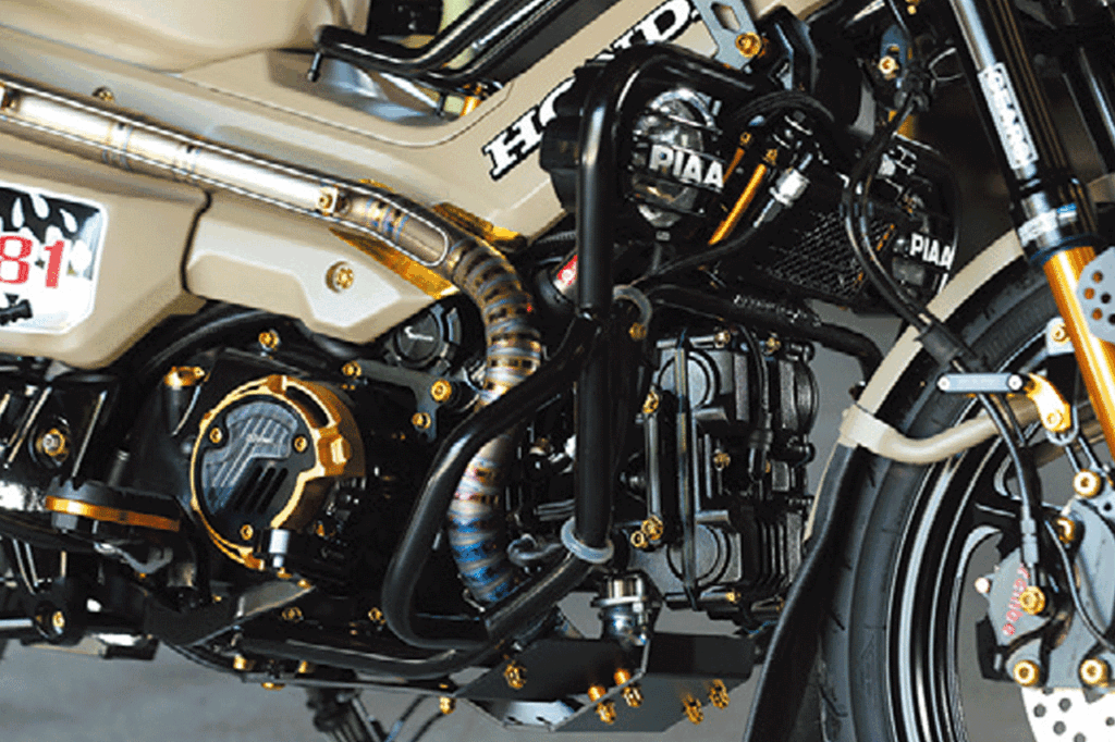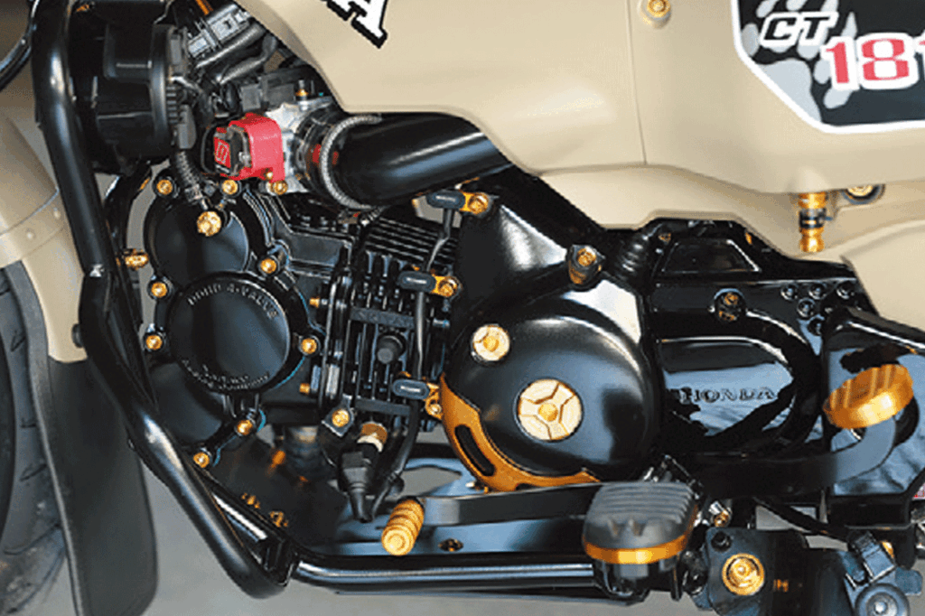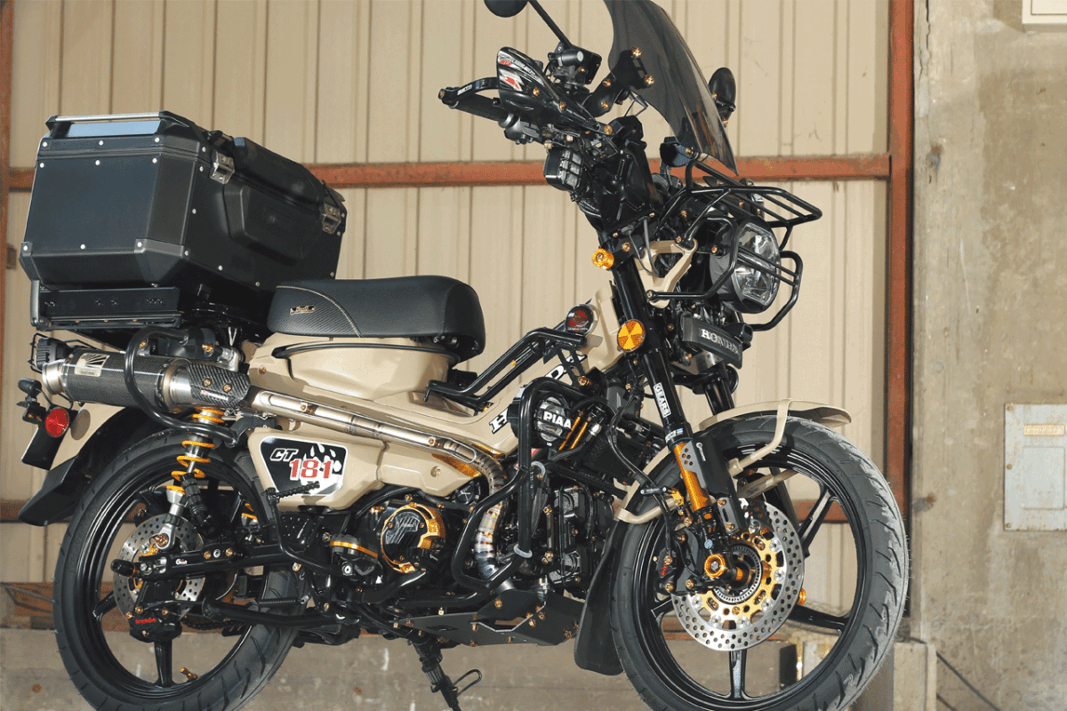 クランク加工によるDOHC181cc化、日本未発売ギアーズ製倒立フォーク、aRacerによる精密制御。CT125を別次元へ引き上げた驚異のカスタム