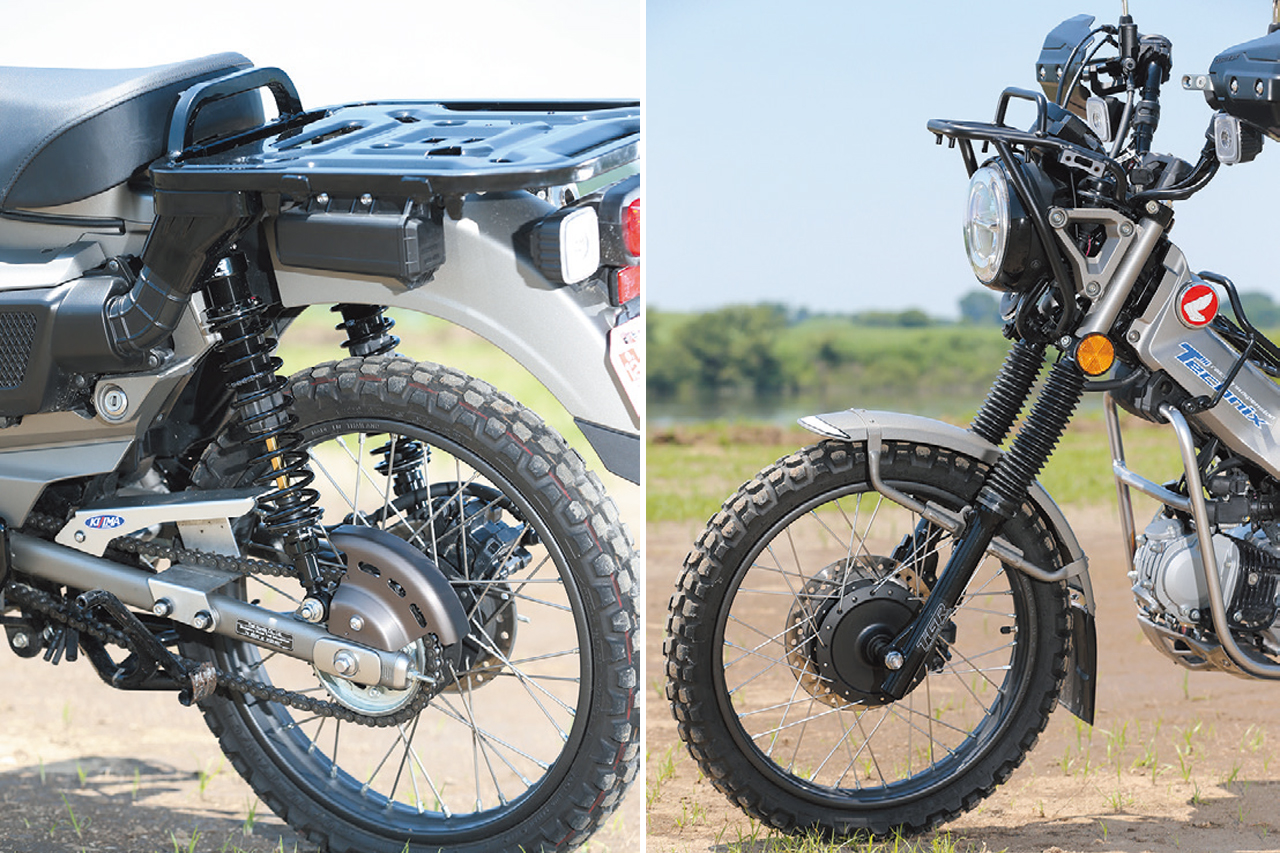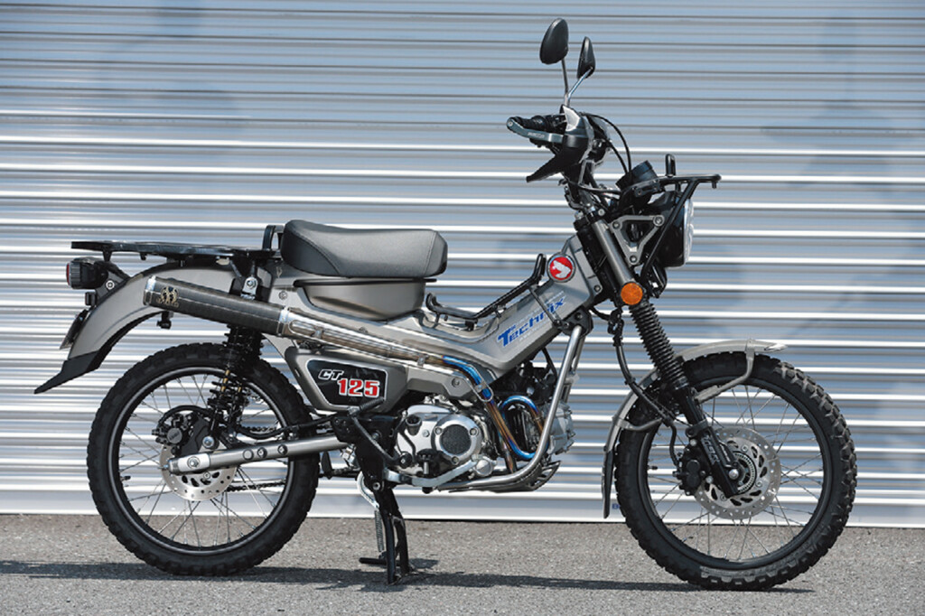 テクニクスが展開する「TGRパフォーマンスショックシリーズ」に、CT125向けの新仕様が追加された。これまでにもCT125用の前後サスペンションはリリースされていたが、今回登場したモデルは“オフロード性能をさらに高めたロングストローク仕様”。激しい走行にも耐える強度とストローク量を確保した、まさに本格派オフロード仕様だ。