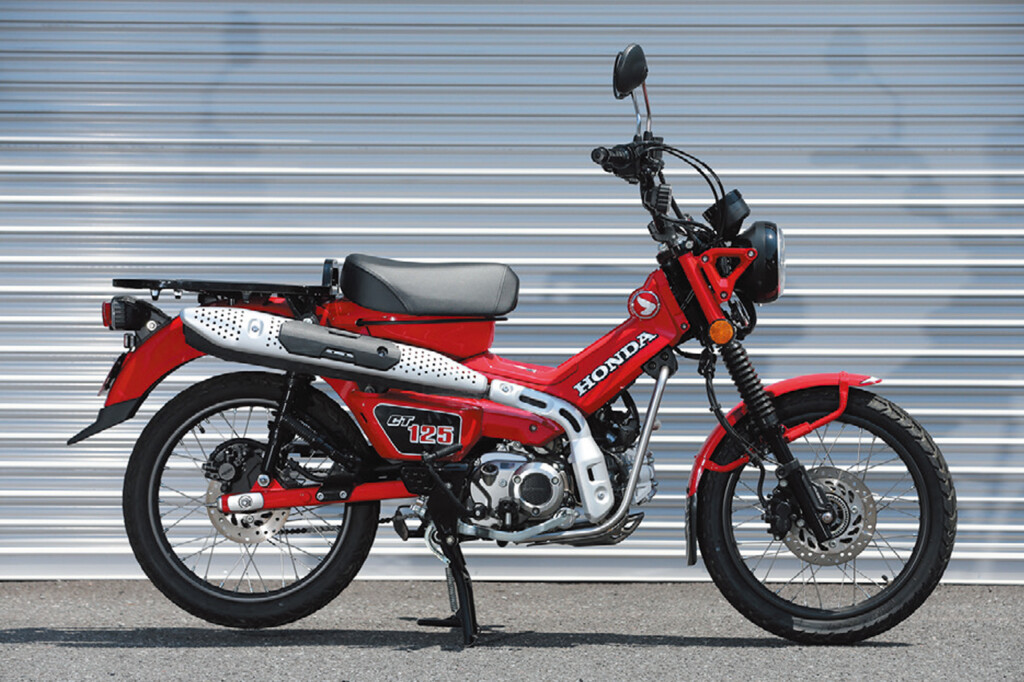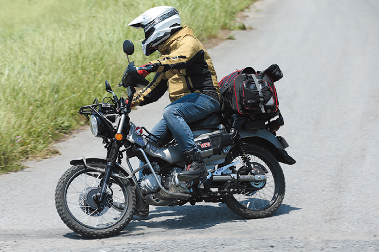 CT125は他の4ミニに比べて重量があるため、どうしてもオフロードでは動きが重く感じられがちだが、足回りの“長足化”によってその弱点を見事に克服。抜群のトラクションと安定感を両立し、走っているだけで楽しくなるフィーリングに仕上がっている。
