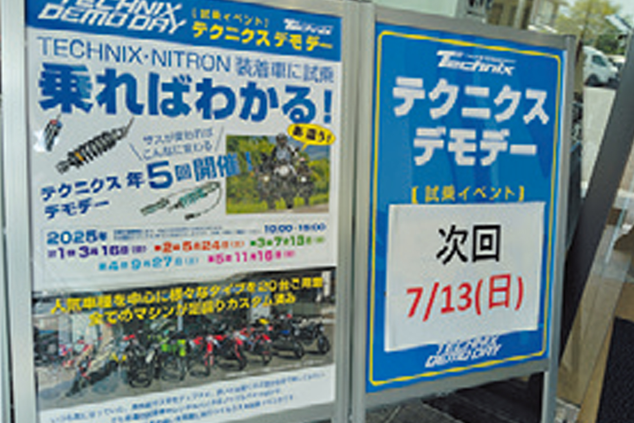 テクニクスでは『テクニクスデモデー』を開催している。この日は様々な車種の試乗が可能でテクニクス製品を堪能できます!! 年内の開催は7/13(日)、9/27(土)、11/16(日)。詳しくはテクニクスHPにてご確認下さい