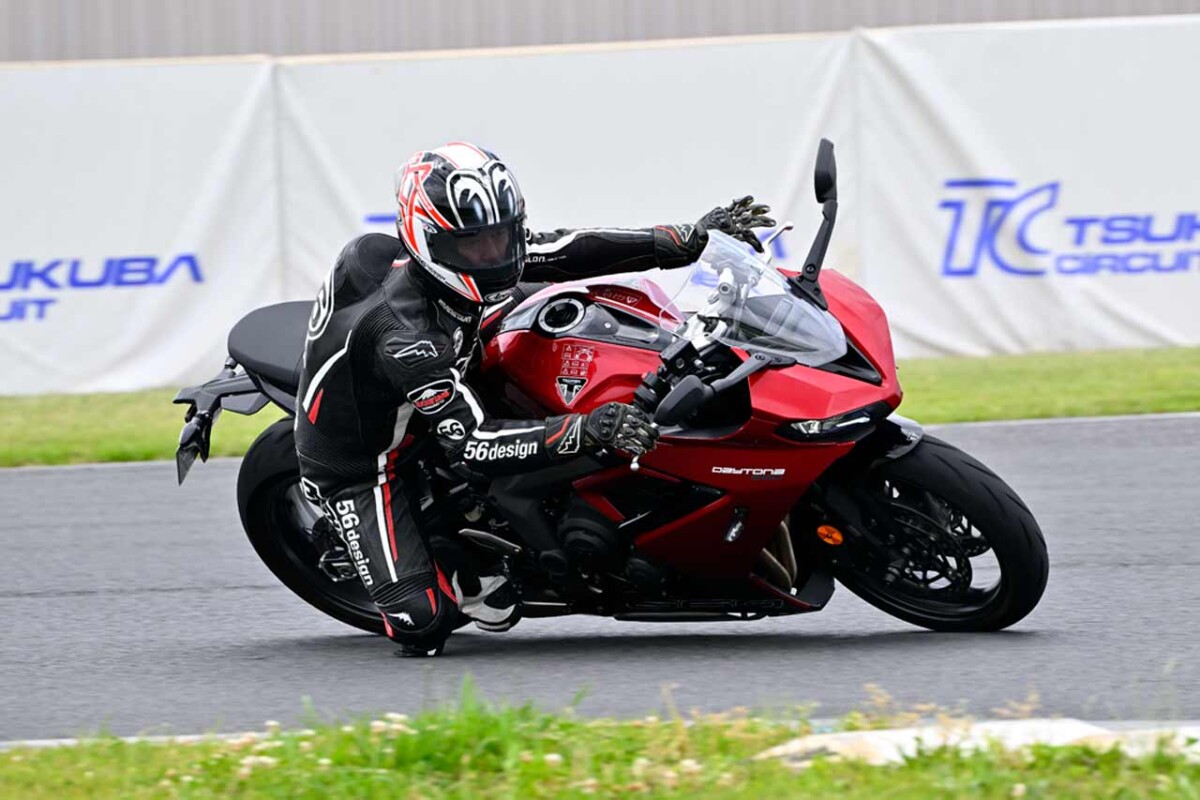 ライディングフォームも車体との一体感を増すため低い姿勢になりますが、ライダーの感覚としては前輪を信頼しながら「フロントに乗れている」手応えがあり、車体が依然として低い姿勢を保ったまま自在にラインをトレースできるイメージです。