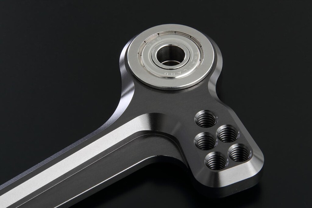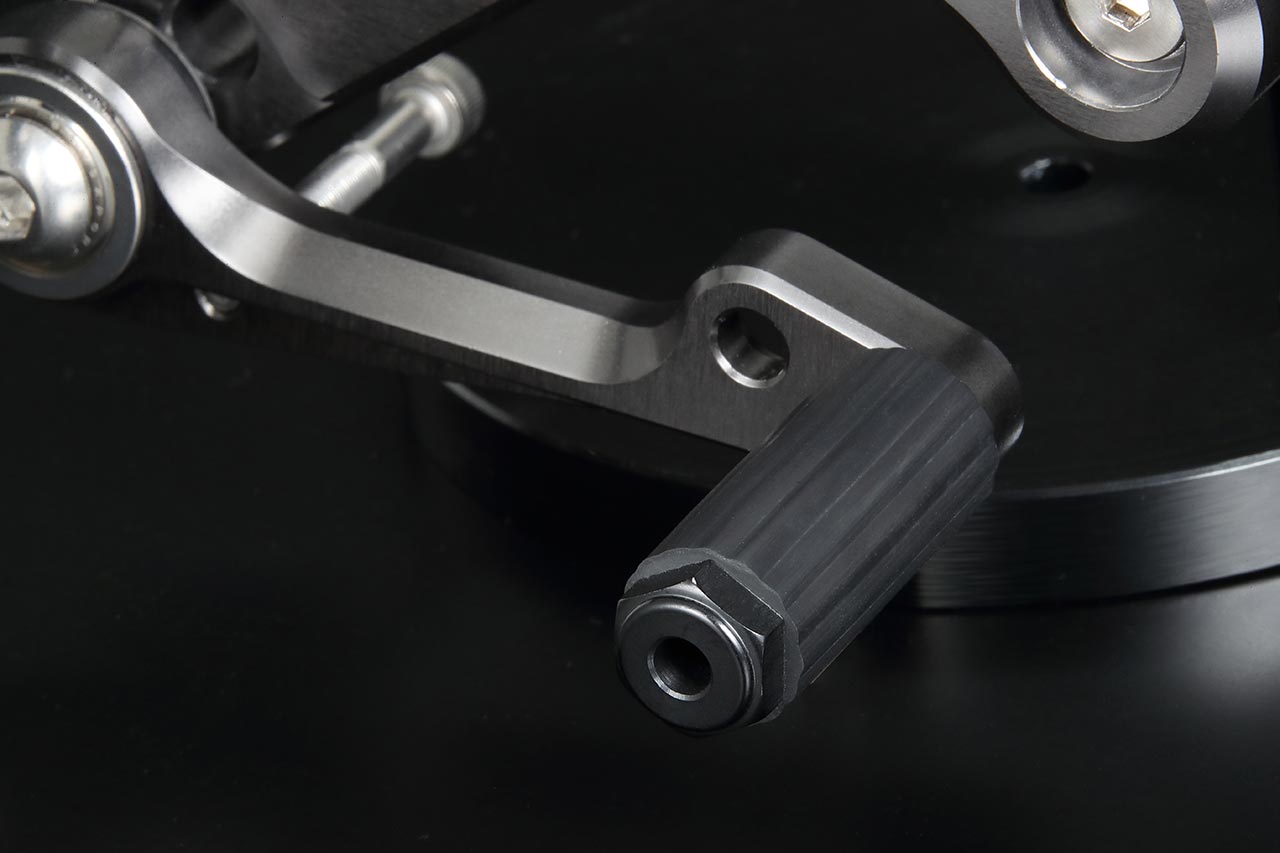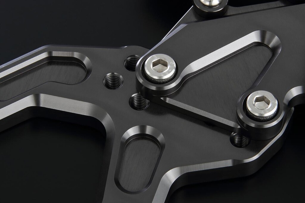 それに加え、写真のKATANA用ではライダーの好みや体格に合わせてペグとシフトペダルを5段階で可変でき、さらにペダル先端の調整も可能。上質なスレートグレーのアルマイト仕上げも、カスタムパーツとしての存在感を高めている。