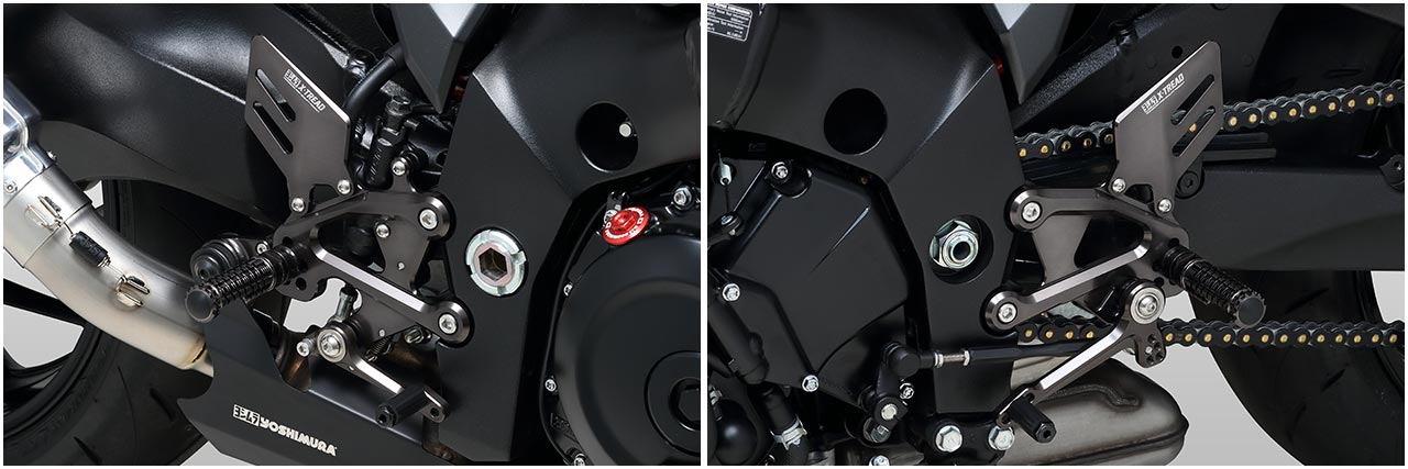 名門ヨシムラが生み出すステップのコンセプトは「マシンとの対話を可能にする」。そのスローガン通り、ステップワークをダイレクトに車体へ伝える高いグリップ力を持つ固定式ペグや、強いホールドを可能にする剛性と操作性を両立したヒールプレートなど、世界のレースで培われた技術が存分に盛り込まれている。