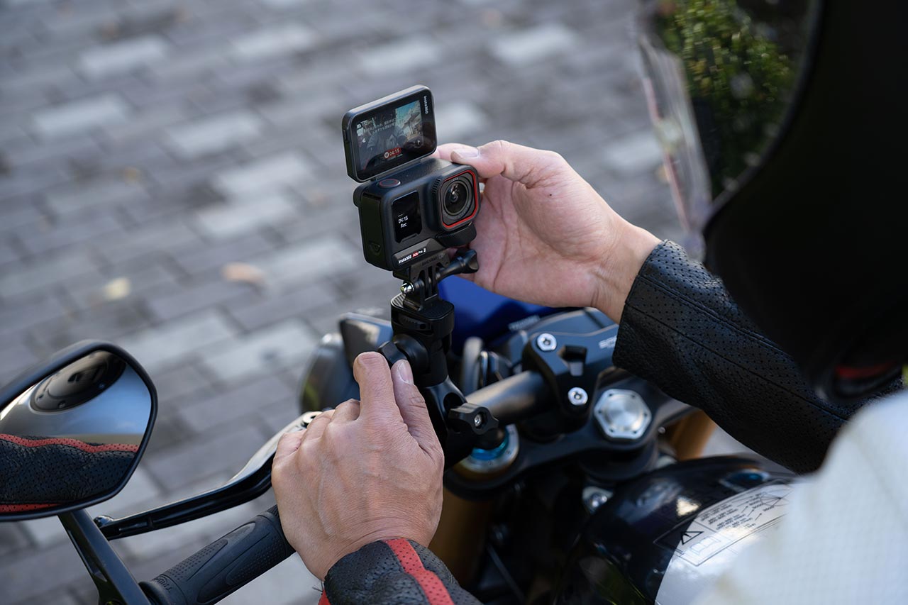 マルク・マルケスをイメージキャラクターとして起用するなど、バイクとの親和性が高いインスタ360。中でもエースプロ2は、ライカと共同開発のF2.6レンズと8Kセンサー、デュアルAIチップを核に、鮮やかな映像を記録する。