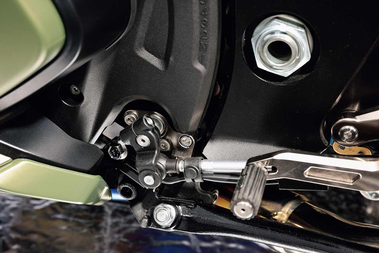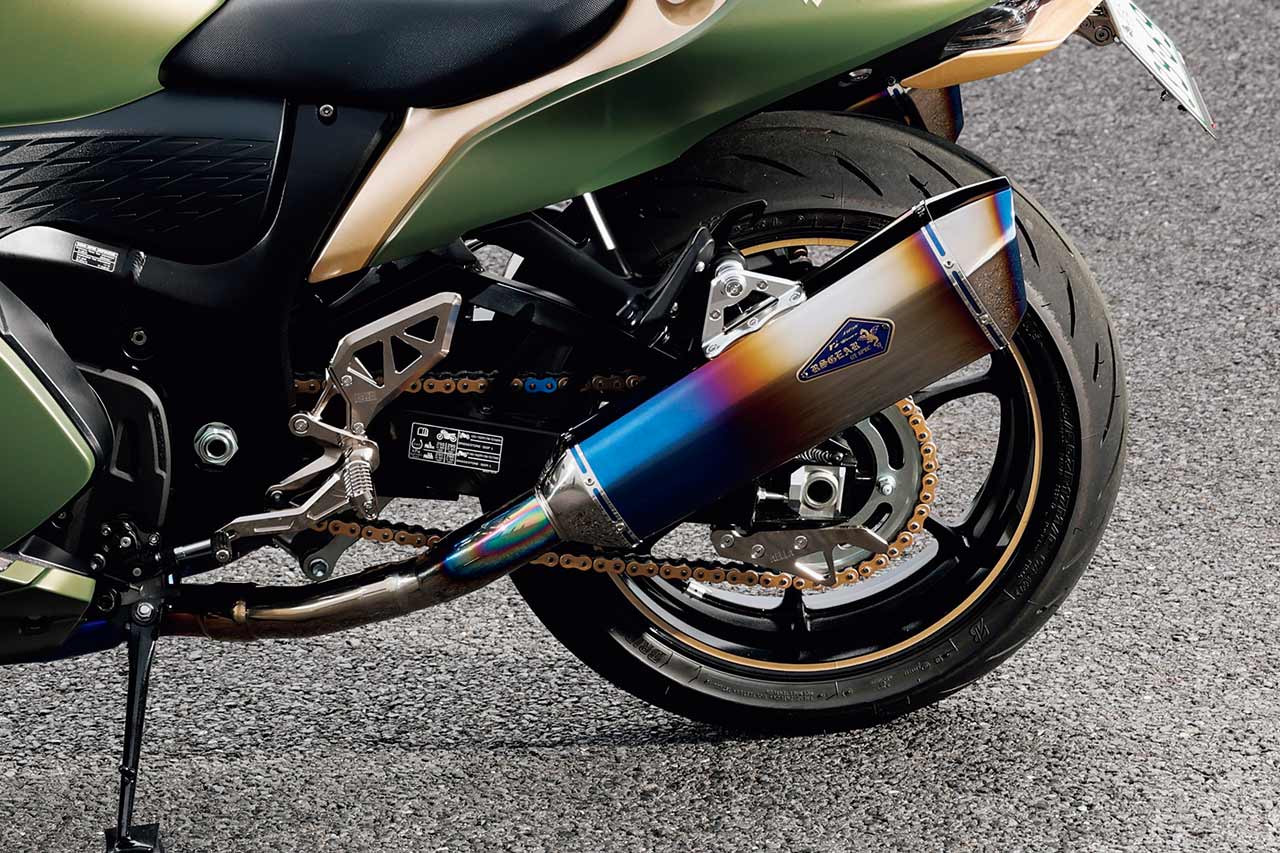 とにかく多数のカスタムパーツが盛り込まれている。走りに大きく影響するところでは、ポジションが変わっているし、マフラーはアールズ・ギア製のチタンフルエキゾーストが装着されている。