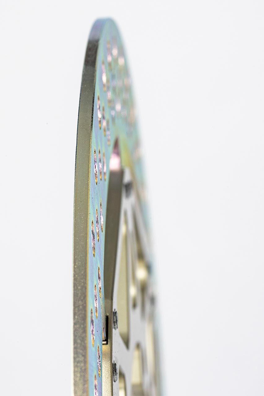 モトクロス用には厚さ3mmの製品もある。この薄さでありながらも歪みを抑えて焼けや熱の問題をクリアしている