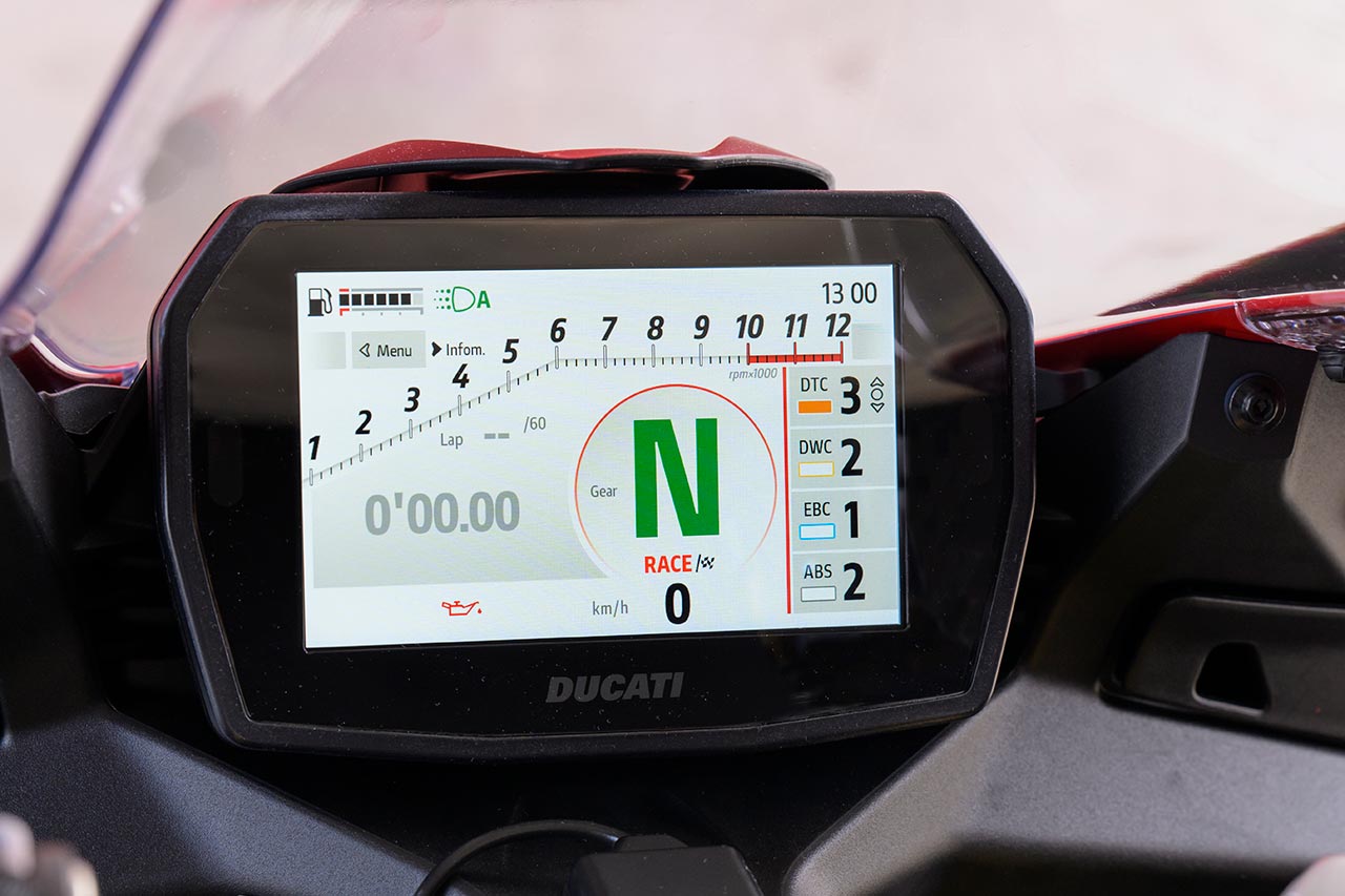 とはいえ、走り出せばやはりドゥカティ。スロットル操作に対するエンジンレスポンスは俊敏で、特にレースモードにした際には少し慎重な操作を心がけた。