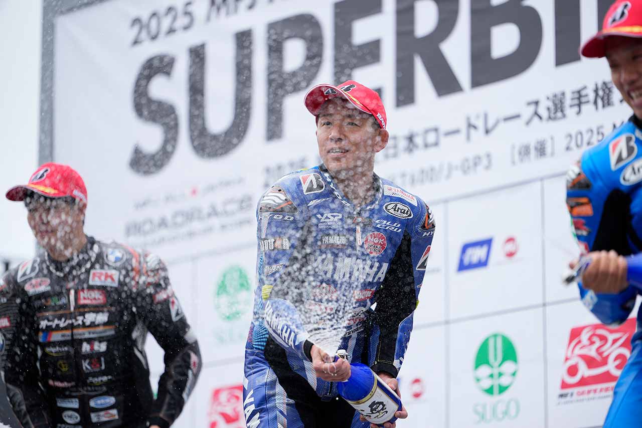 全日本ロードレース選手権第2戦スポーツランドSUGO。その舞台で行われた2レースを終え、中須賀克行とヤマハファクトリーレーシングチームのスタッフは、実に1年ぶりとなる勝利を静かに、そして深く噛み締めていた。JSB1000クラスでの通算優勝回数は、レース前の89から一気に91へ。数字以上に印象的だったのは、レース内容と、その走りが示した確かな手応えだ。苦しい時間を乗り越えた先にあったこのSUGOでの連勝は、“強い中須賀”の完全復活を誰もが実感する瞬間となった。