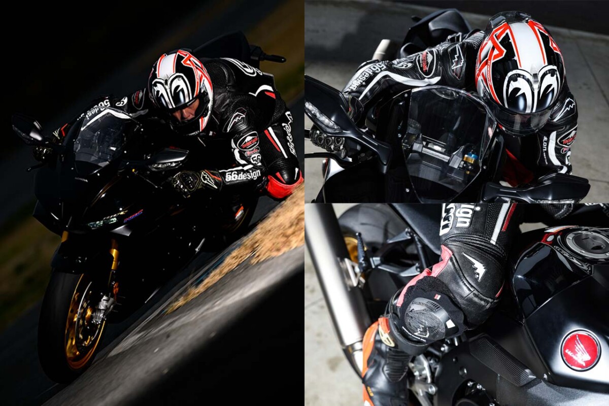【バンク角が同じでも安定感が格段にアップする】上半身と下半身ともに低く構え、頭の位置が車体に近づいたことで、「マシン+ライダー」で考えたときに重心が下がり、マスも集中。これにより旋回中の安定感がアップし、リーンウィズと同じバンク角でも心に余裕が生まれる