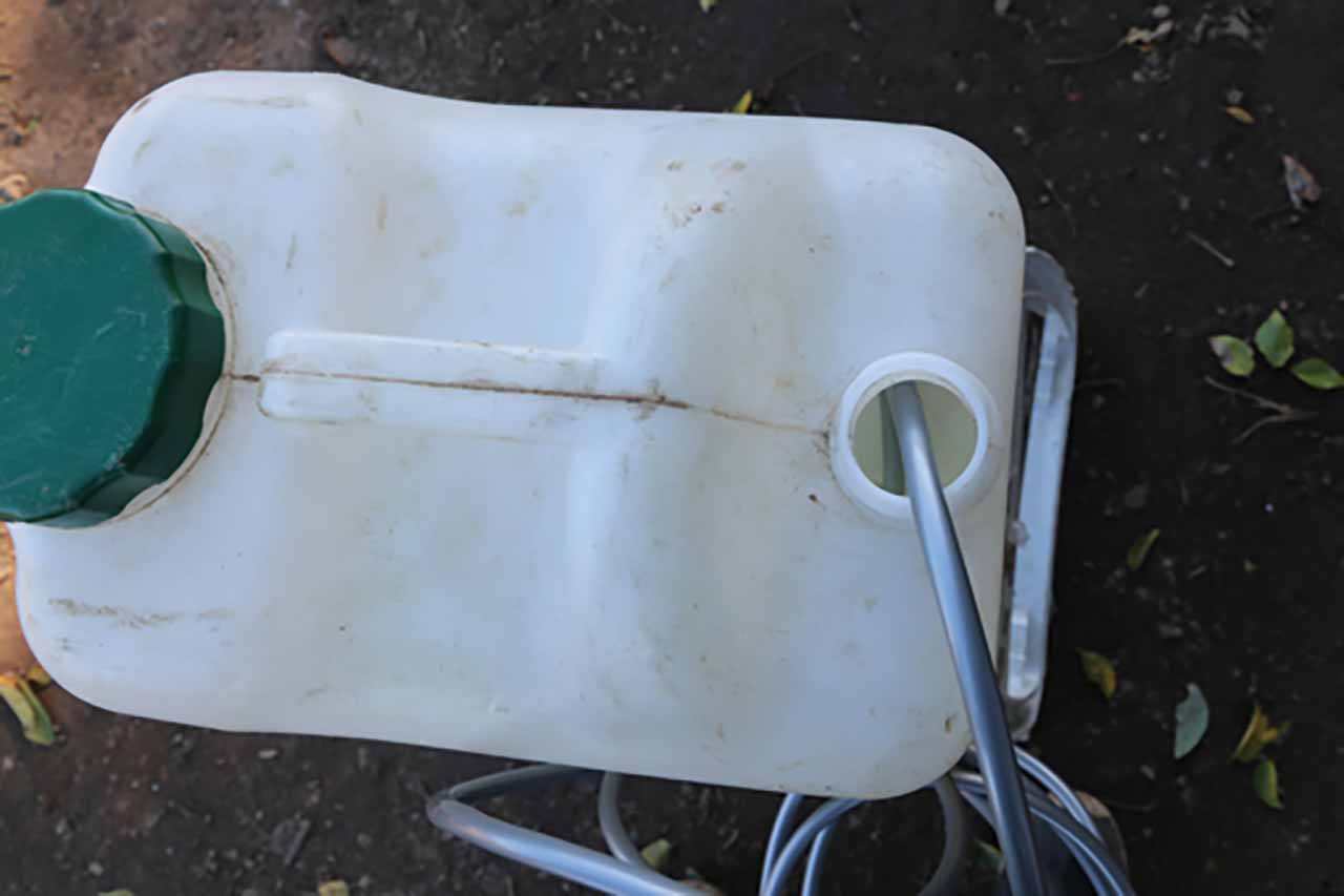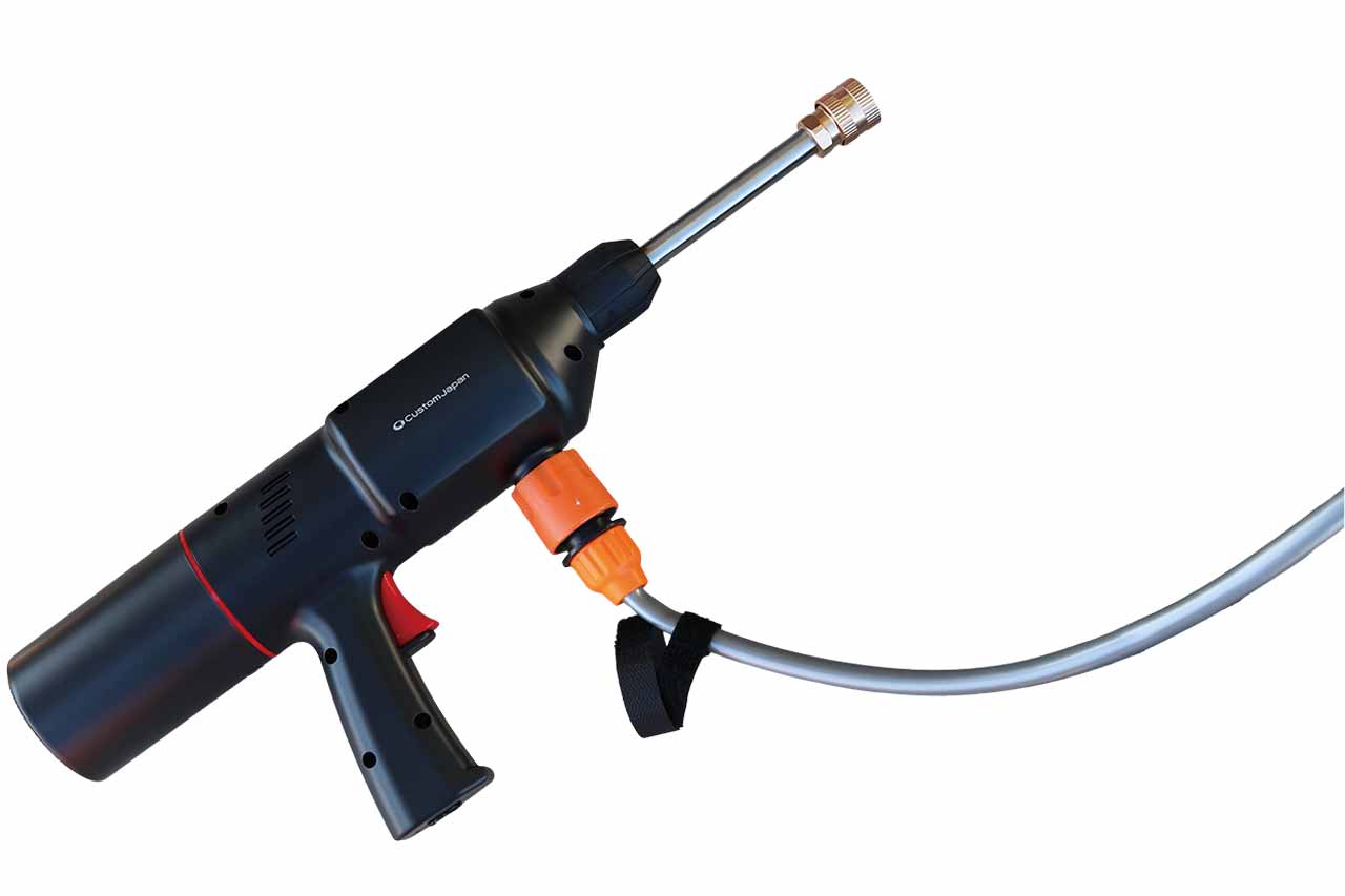 水道も電源も不要、給水タンクの水だけでその場洗浄が可能な、カスタムジャパンのスマートポータブル01高圧洗浄機。