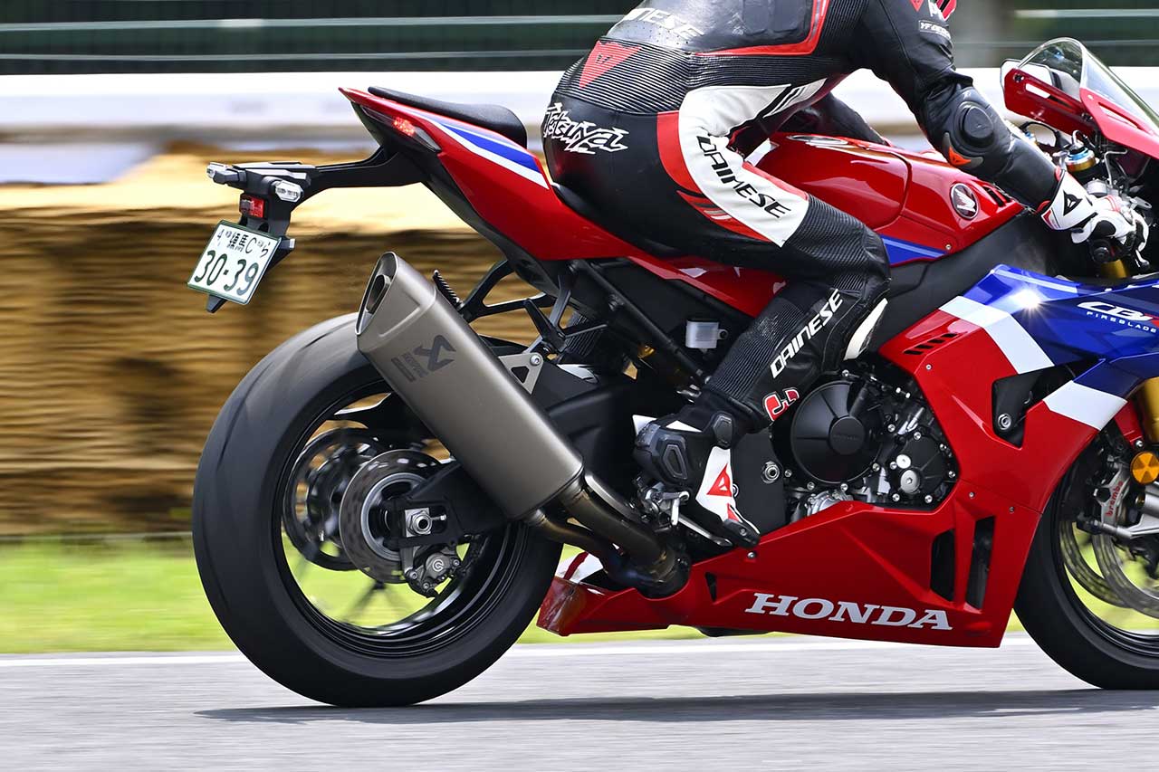 ③【リアをかけ続けることでフロントの制動力を補助】エキスパートライダーは、リアブレーキに入力し続けることで、直立状態での制動力を高め、よりハードなブレーキングを狙っている。ただしレースではないスポーツライディングレベルなら、リアがまるで使えなくても問題はない