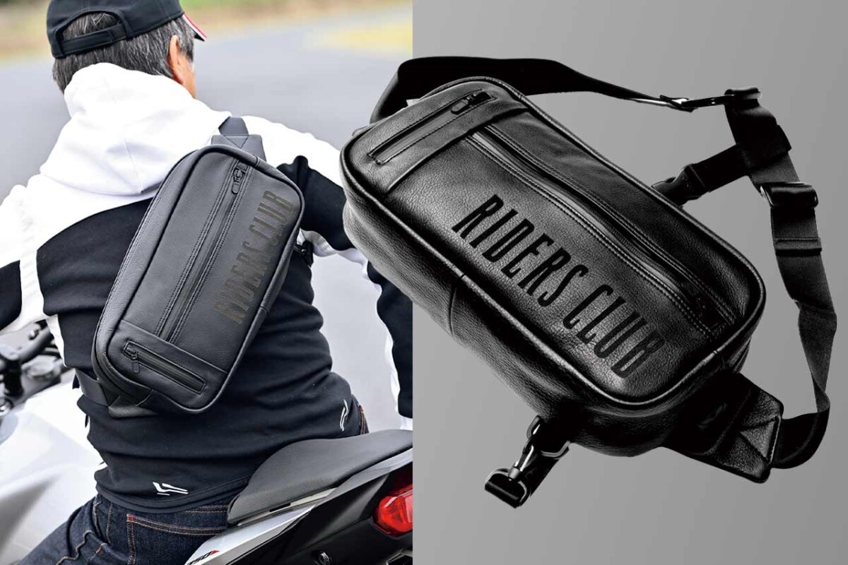 撥水牛革にRIDERS CLUBのロゴをレーザー加工で刻んだ、おしゃれなワンショルダーバッグが新登場。日帰りツーリングに必要な小物を全て収納できる大容量です。