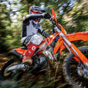 平嶋 それでいて、車体は〝シッカリ感〞があるんですよね。オフロードバイクってサスペンションのストローク量が大きいですし、ビヨンビヨン動いちゃうことがありますよね? サーキットを走る前に、コーナーでブレーキをリリースした時にフロントフォークが急に伸びたら怖いなって警戒していたんですけど、ちゃんと減衰が効いていて、伸び方が穏やかで安心して走れました。ギャップを踏んでも、無闇にサスペンションが動くこともありませんでした。軽くて振り回せるから、サーキットを攻めるのも意外なくらい楽しめました。