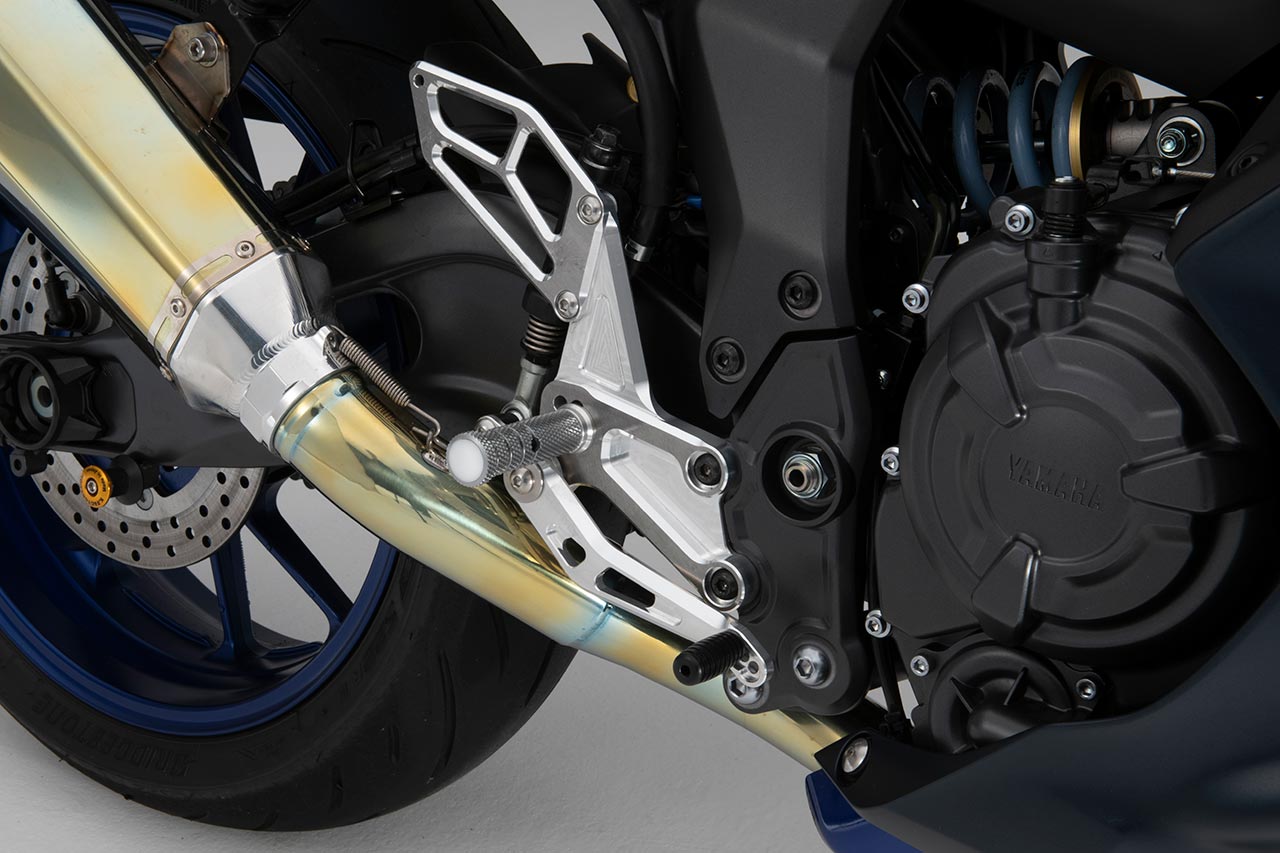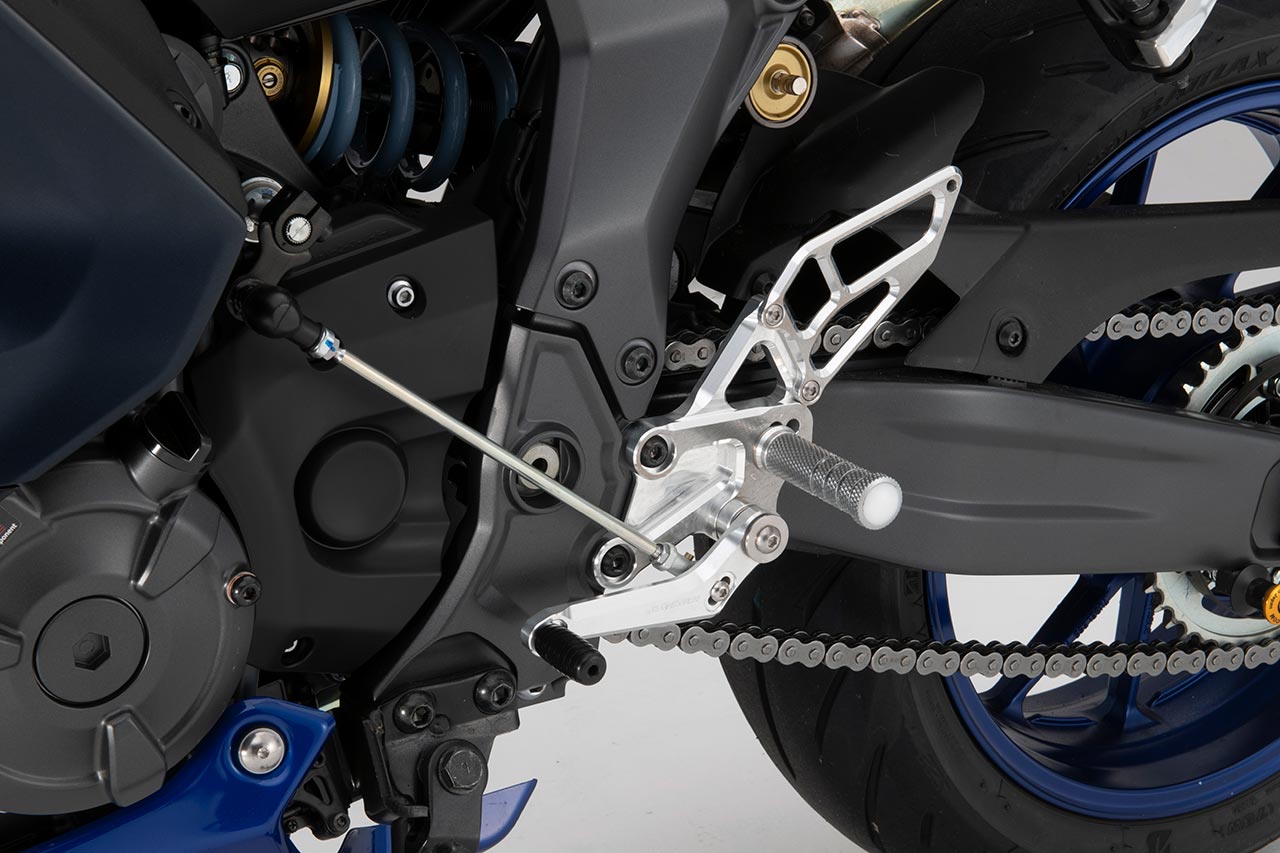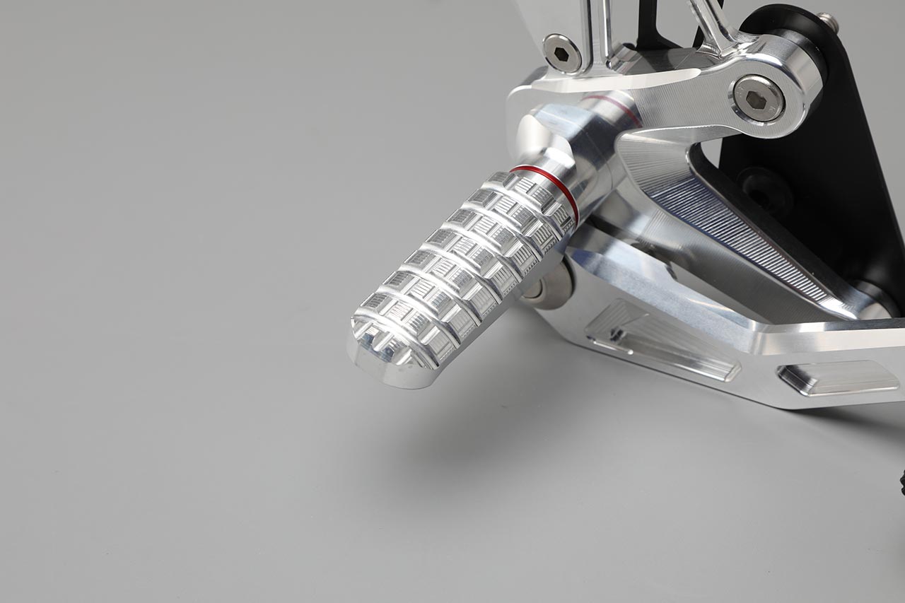 このYZF-R7用は、コンパクトな車体にマッチするシンプルなデザインを採用。操作性を重視してペダルとフットペグを別軸構造としている。ポジションは後方に0/10mm、上方に10/20mmの4パターンから選択可能だ。