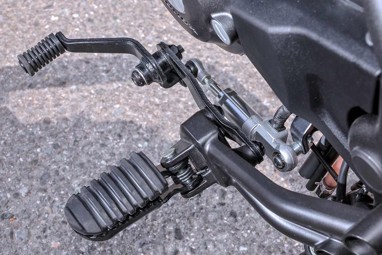 第1弾の650シリーズと同じく、レブル250も電子制御スロットルは採用していないので、シフトダウン時のオートブリッピング機能はない。このため650は、超高回転域で2→1速にシフトダウンすると、瞬間的に車体の挙動が乱れることがあった。ところがレブル250の場合、シフトダウン時の半クラッチ時間が微妙に長く、レブリミット付近で1速まで落としたとしても、タイヤがキュッと鳴くことはない。