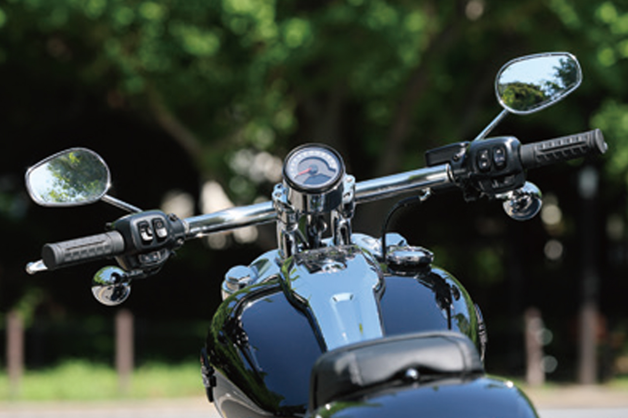 車重は309kgだけど665mmというクルーザーカテゴリーで一番低いシート高なので、身長158cmの私でも足つきバツグンで恐怖感なし。極太のリアタイヤとハンドル位置の遠さのせいで私の体格ではUターンはちょい難ありだけど、ハンドリングは素直で曲がりにくさはあまり感じない。エンジンは街中から高速道路まで幅広く楽しめる「カスタム」というセッティング。街中ではギクシャクしないレインやロードモードがオススメ。加速を楽しみたいなら断然スポーツモード!アクセルをグッと開けると極太リアタイヤが路面をガシガシ捉えて、ドッカンパワーが炸裂!!ヤル気のポジションがアドレナリンをさらに放出してくれちゃう(笑)。見た目も走りもド迫力で人気なのも納得なのであった。
